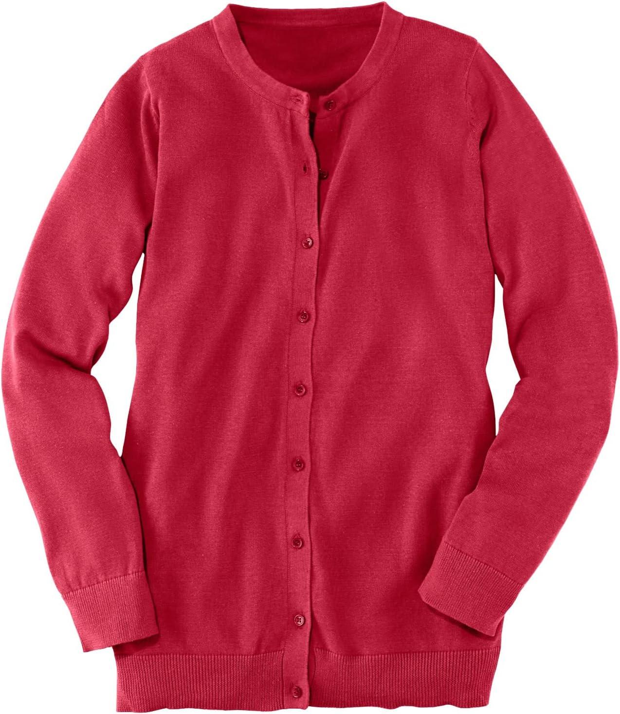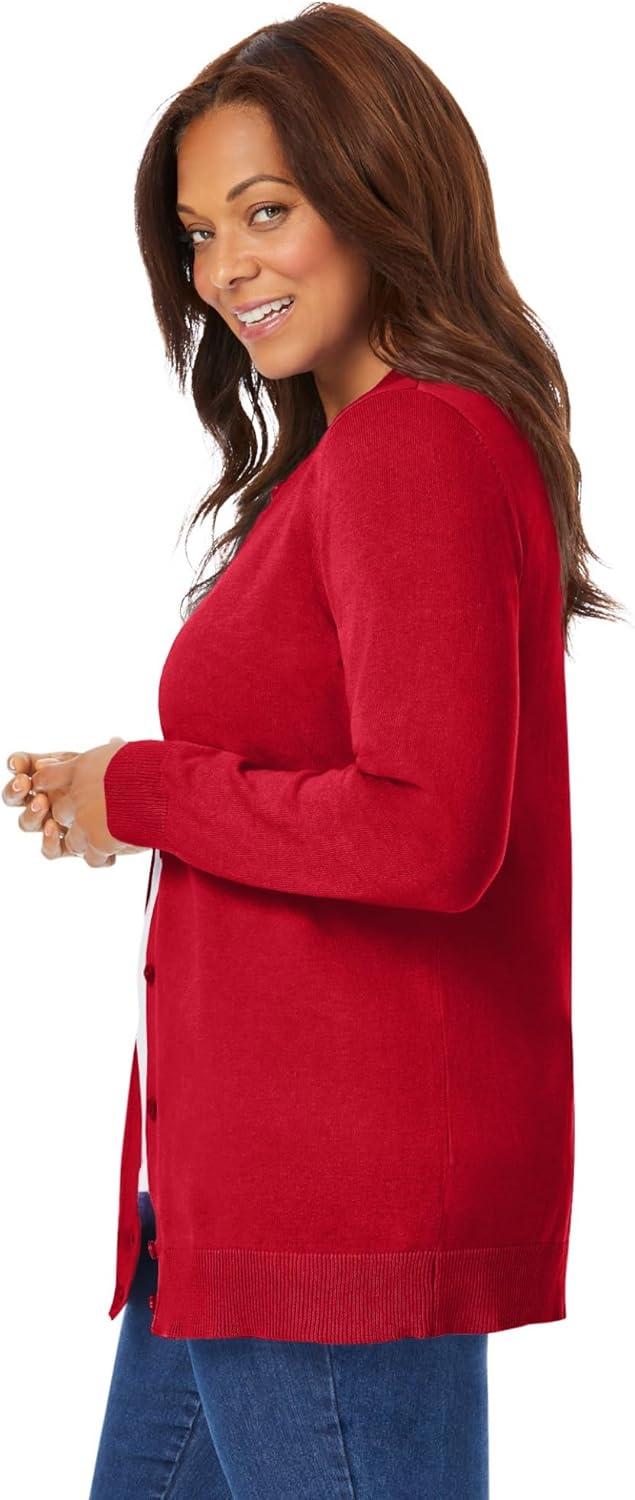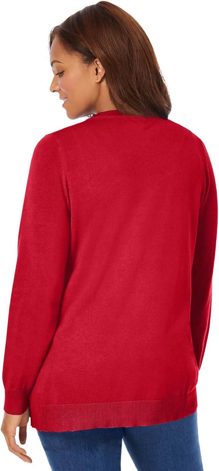 Woman Within Plus Size Perfect Long-Sleeve Cardigan Sweater(Classic Red)
