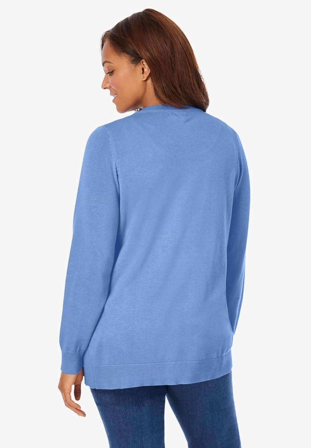 Woman Within Plus Size Perfect Long-Sleeve Cardigan Sweater(French Blue)