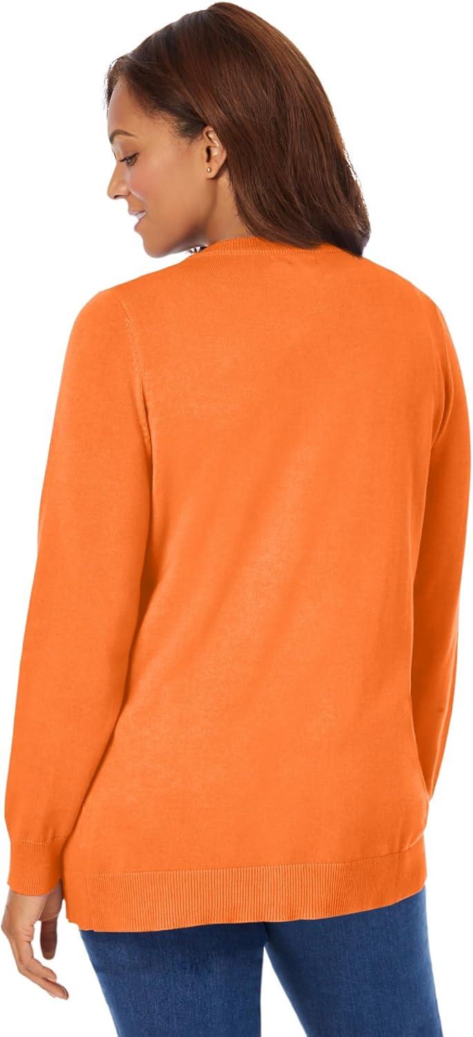 Woman Within Plus Size Perfect Long-Sleeve Cardigan Sweater(Orange Twist)