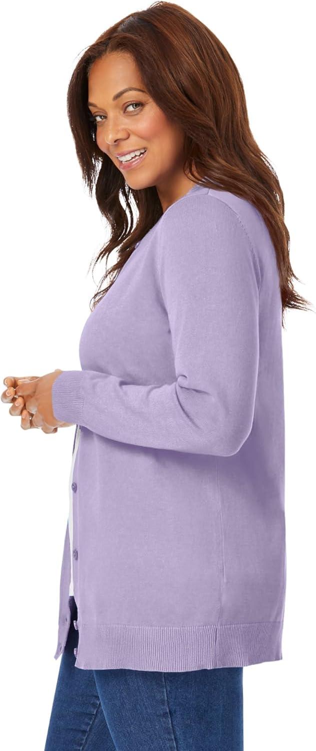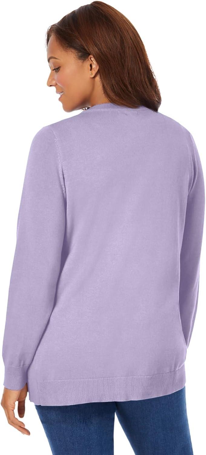 Woman Within Plus Size Perfect Long-Sleeve Cardigan Sweater(Pale Lilac)