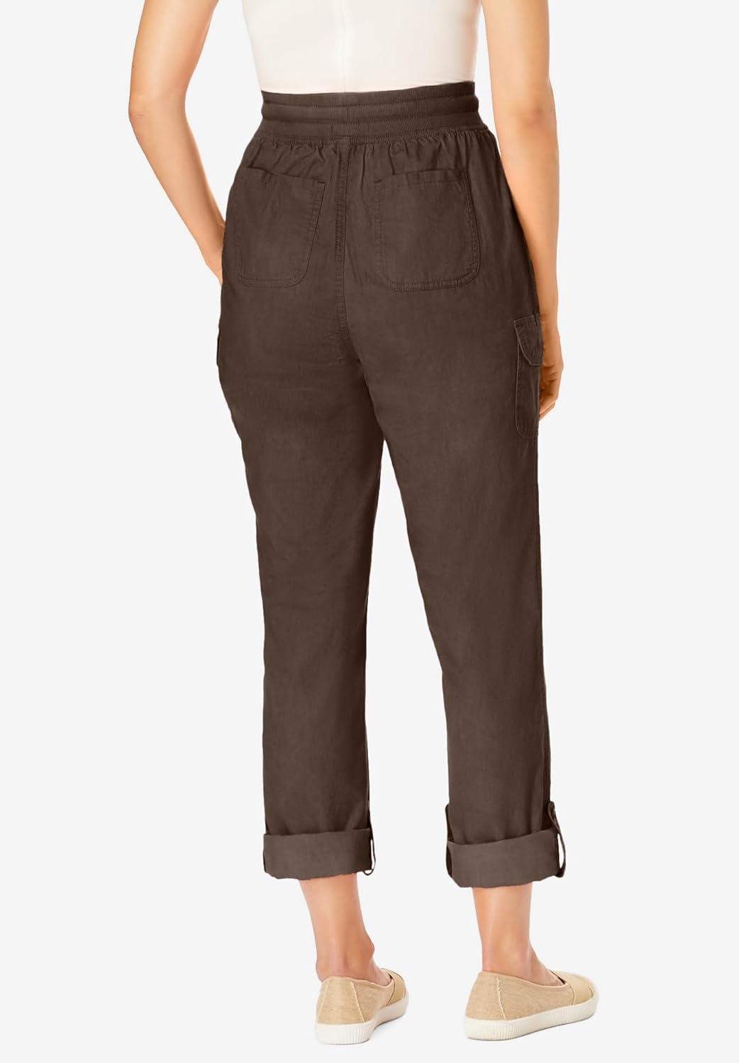 Woman Within Plus Size Convertible 2-in-1 Cargo Pant & Capri Elastic Waist(Chocolate)