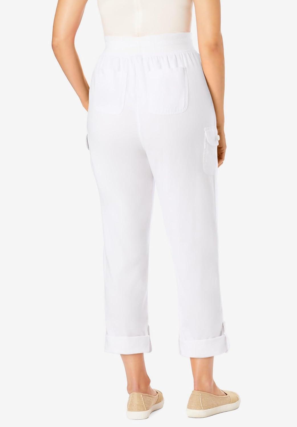 Woman Within Plus Size Convertible 2-in-1 Cargo Pant & Capri Elastic Waist(White)