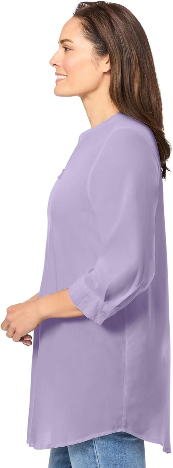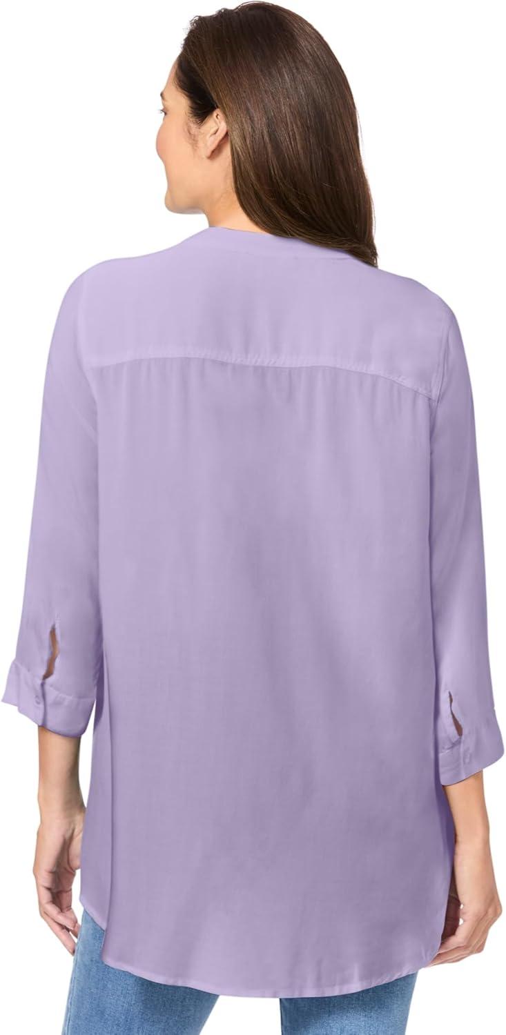 Woman Within Plus Size Rayon Three-Quarter Sleeve Effortless Tab-Front Blouse(Pale Lilac)