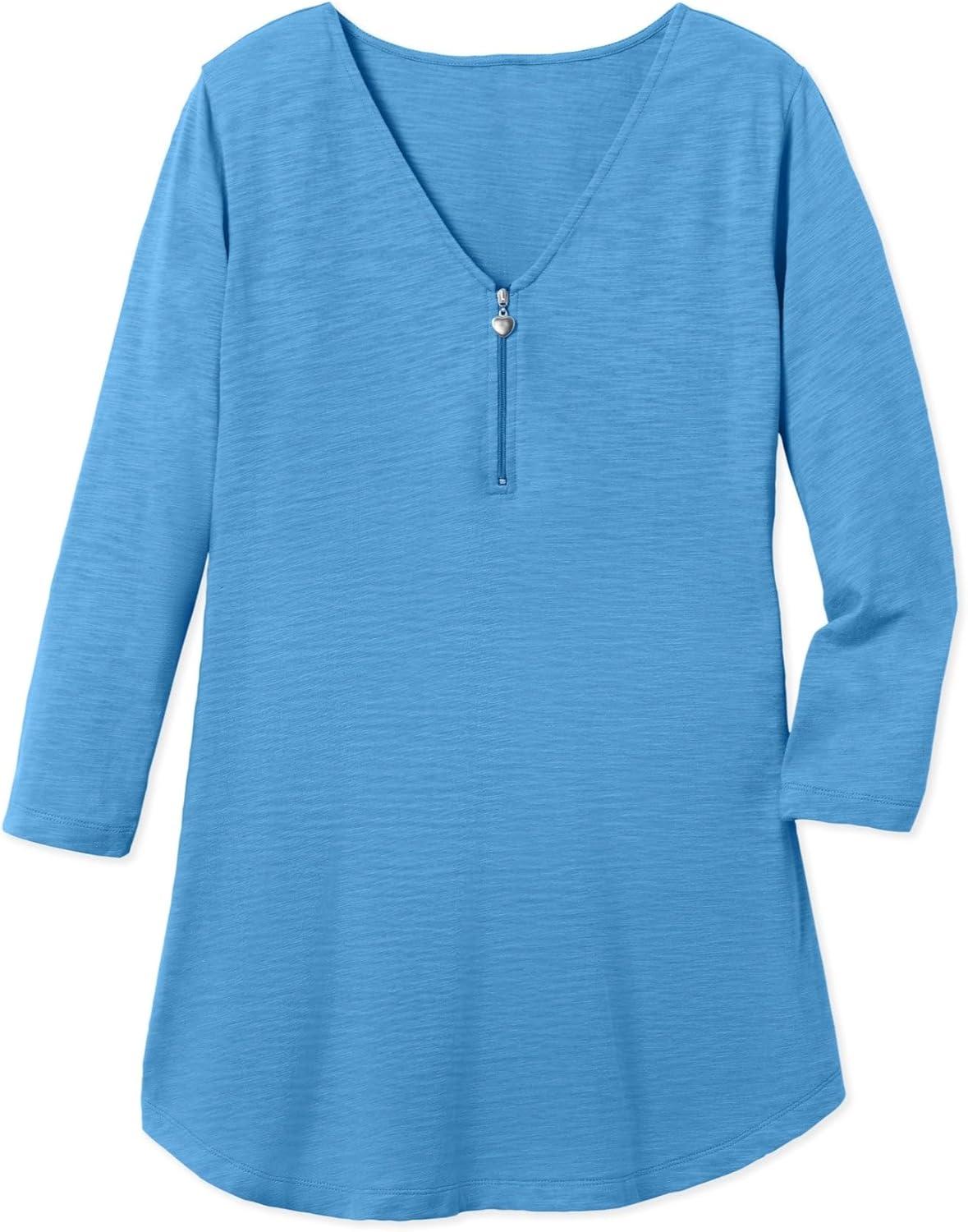 Woman Within Plus Size Three-Quarter Sleeve Zipper Tunic(Azure Blue)