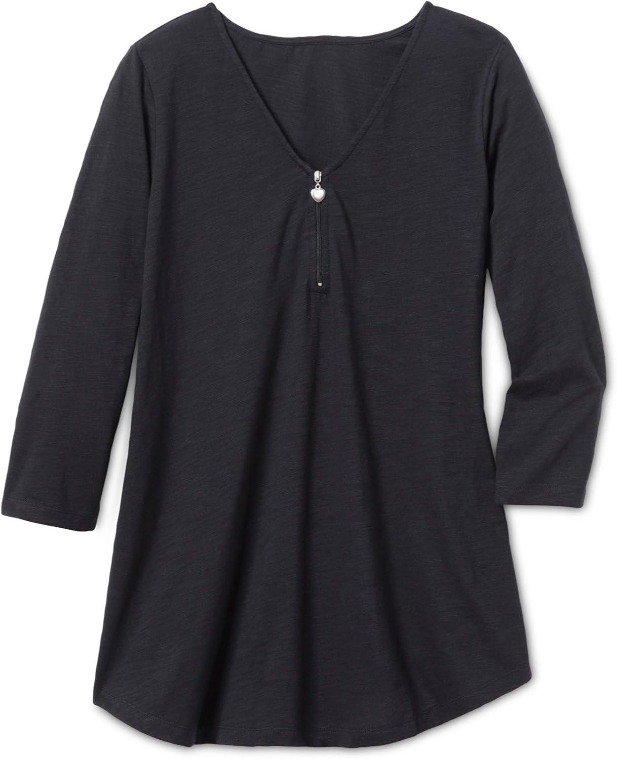 Woman Within Plus Size Three-Quarter Sleeve Zipper Tunic(Black)