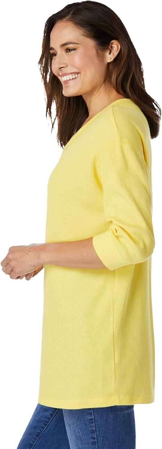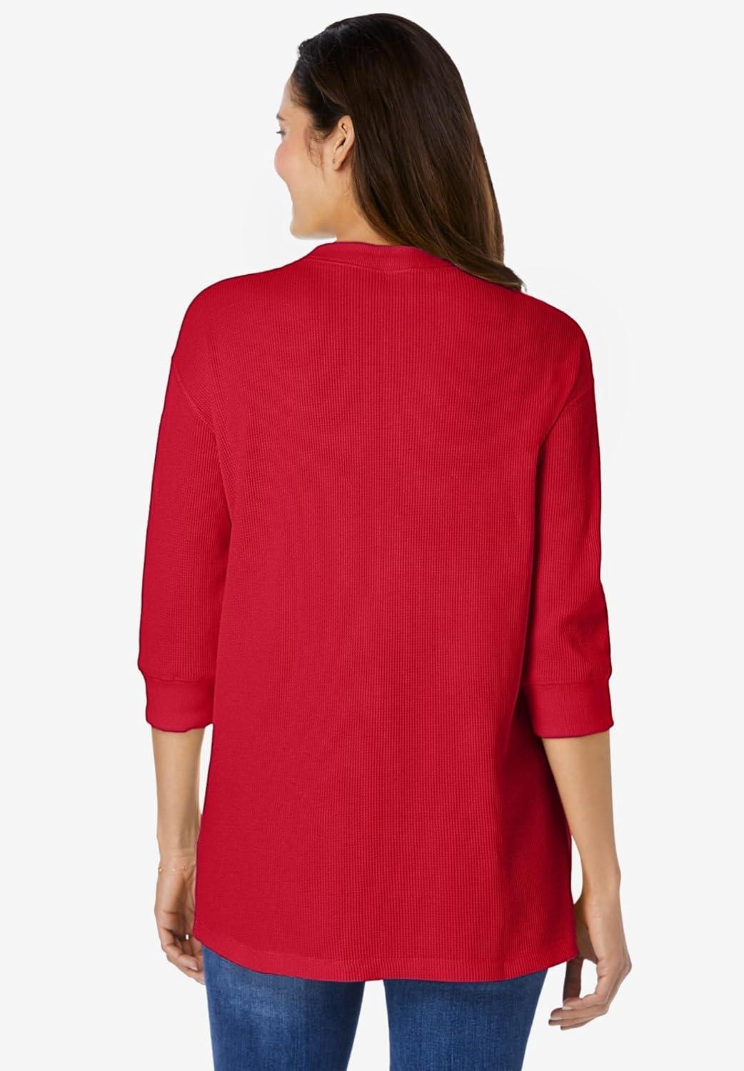 Woman Within Plus Size Three-Quarter Sleeve Thermal Sweatshirt(Classic Red)