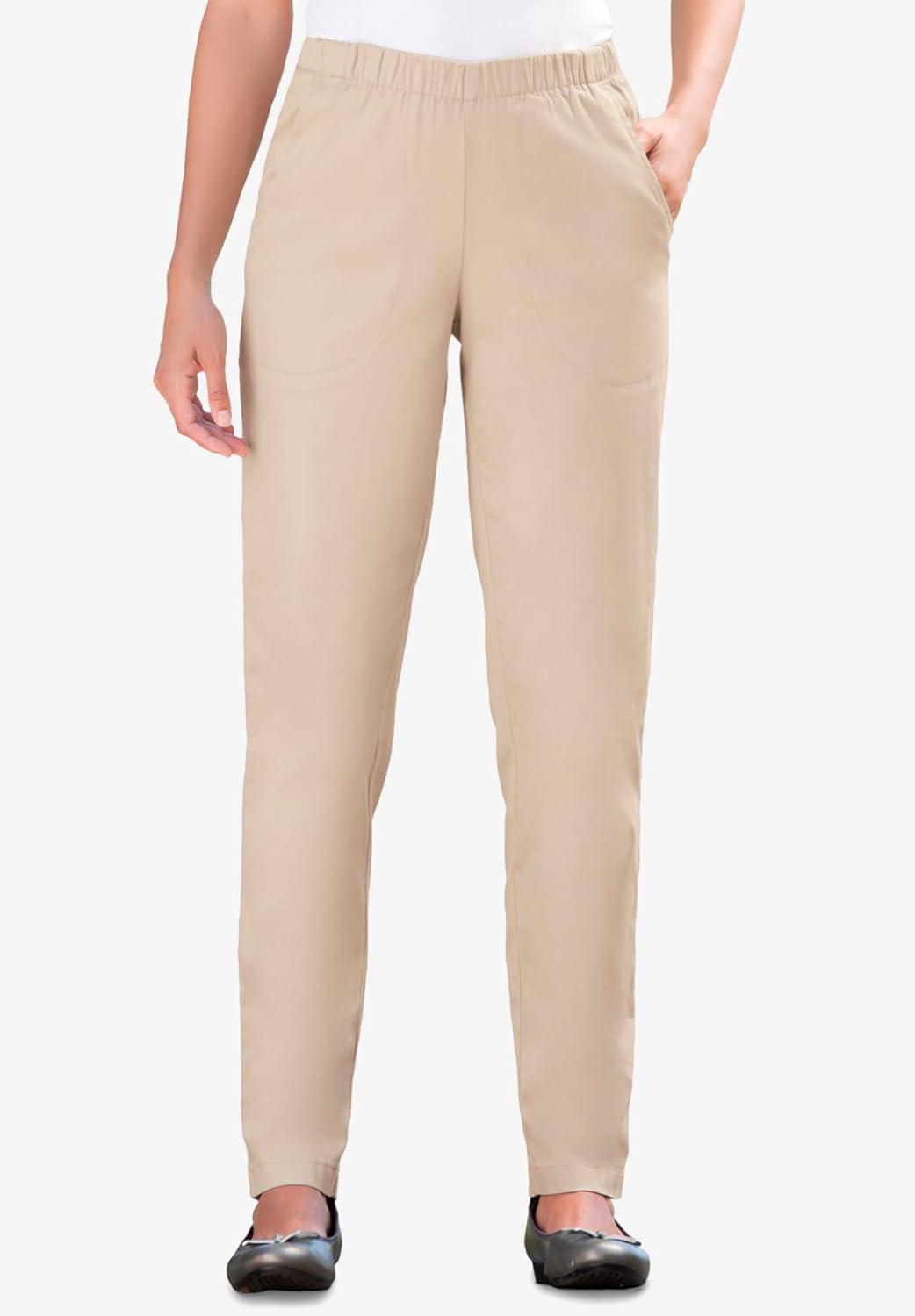 Woman Within Plus Size Straight Leg Elastic Waist Stretch Fineline Denim Jean (Petite & Tall Available)(Natural Khaki)
