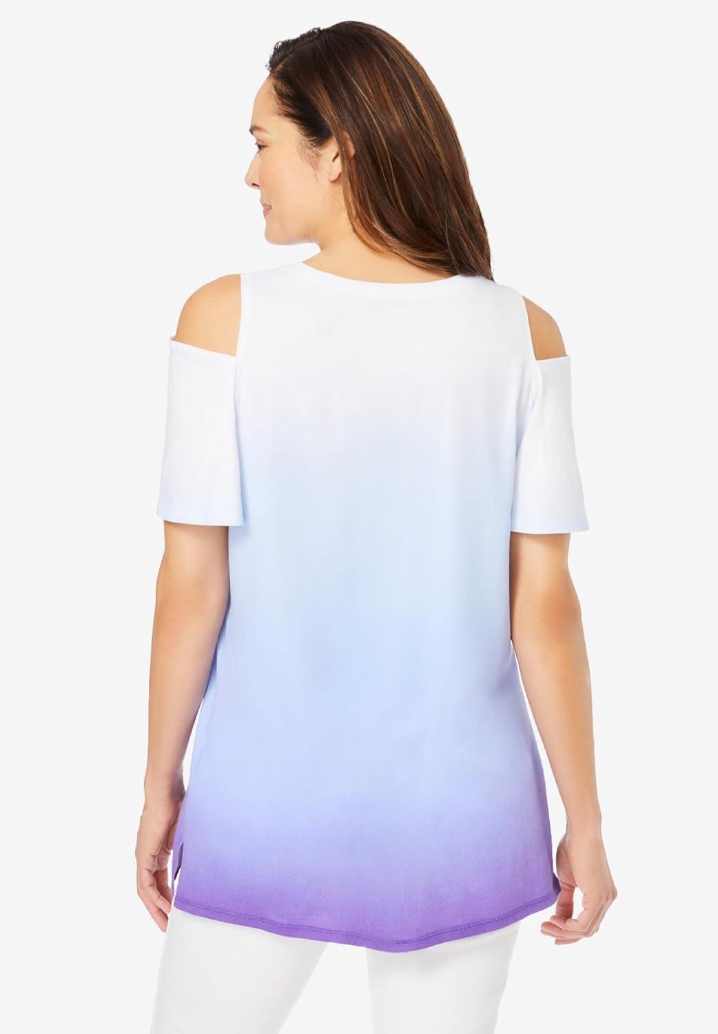 • Woman Within Plus Size Short-Sleeve Cold-Shoulder Tee(Purple Orchid Ombre)