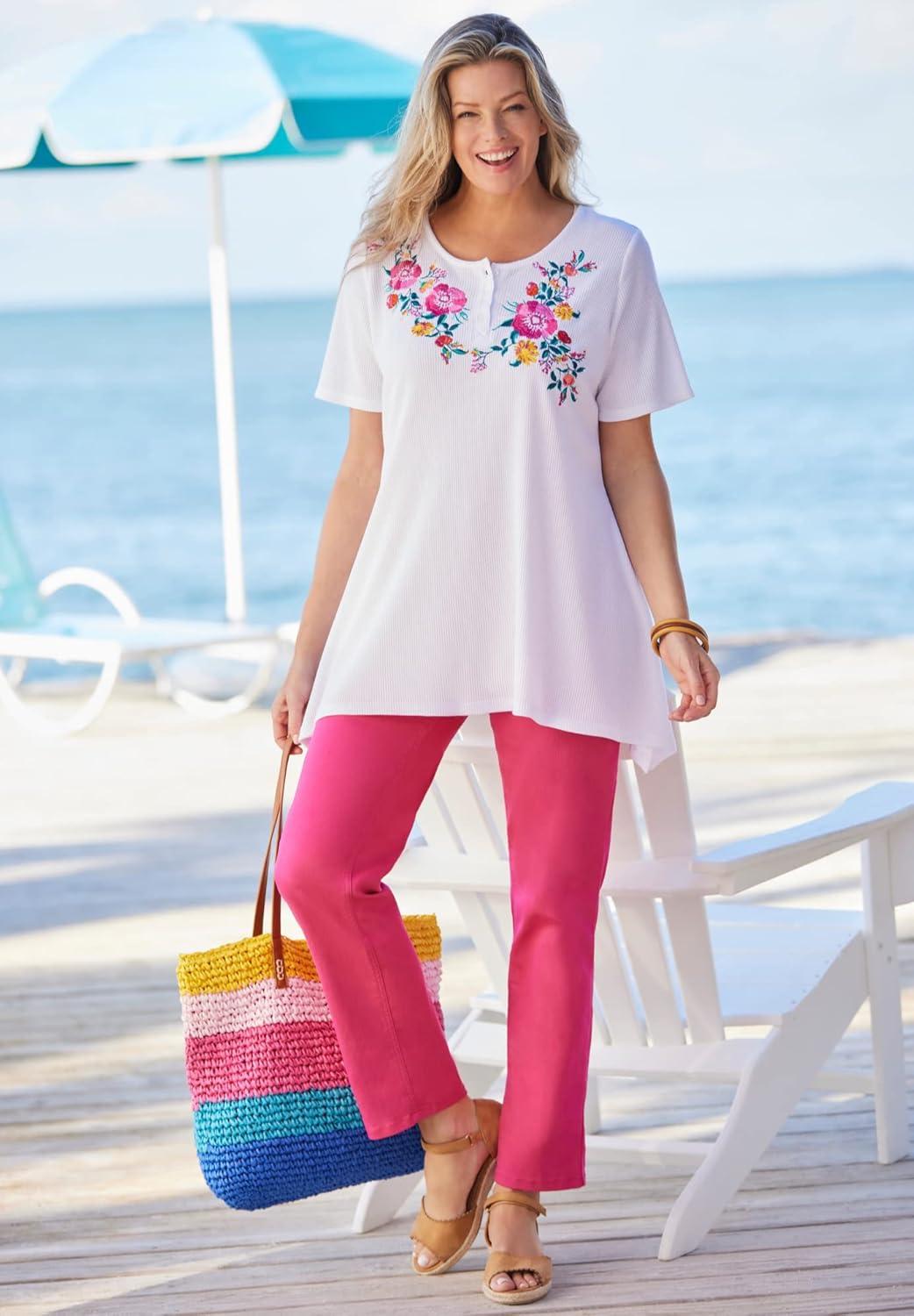 Woman Within Plus Size Embroidered Knit Tunic(Raspberry Sorbet)