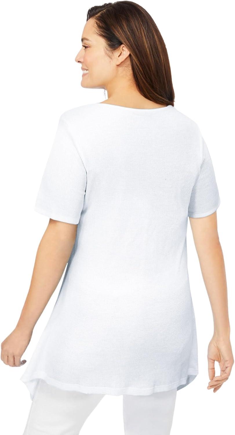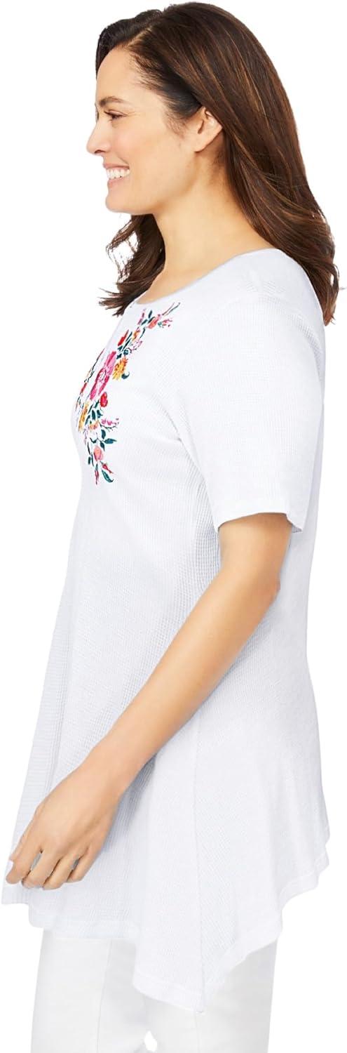 Woman Within Plus Size Embroidered Thermal Tunic(White Blooming Embroidery)