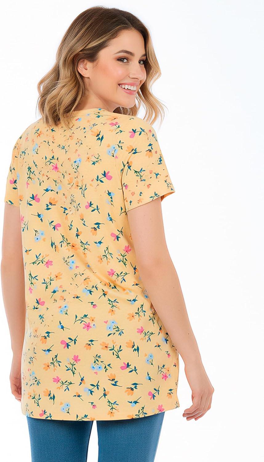 Woman Within Plus Size Perfect Printed Short-Sleeve Shirred V-Neck Tunic(Banana Tulip Flowers)