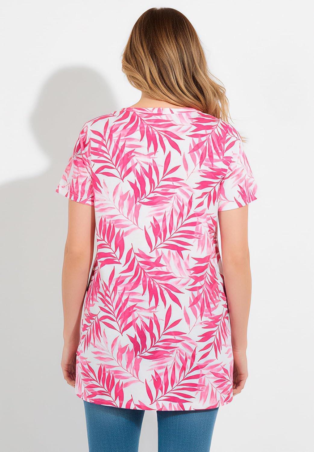 Woman Within Plus Size Perfect Printed Crewneck Tunic(Raspberry Palm Leaves)