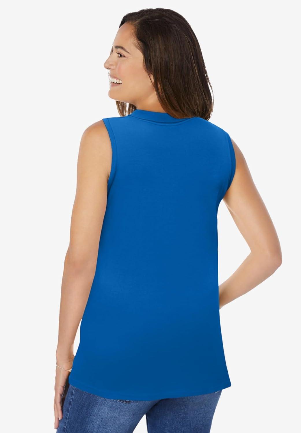 Woman Within Plus Size Sleeveless Polo Tunic(Bright Cobalt)