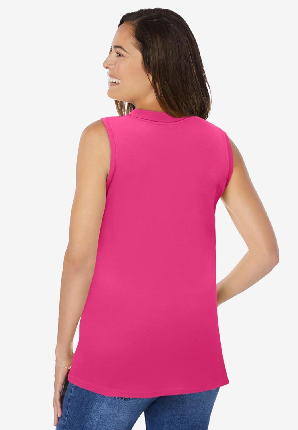 Woman Within Plus Size Sleeveless Polo Tunic(Raspberry Sorbet)
