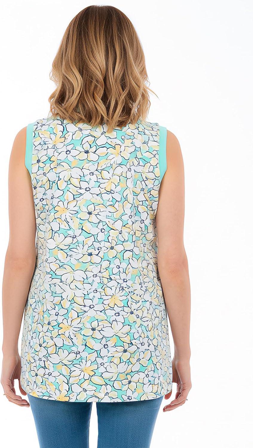 Woman Within Plus Size Sleeveless Polo Tunic(Seafoam Petal Bloom)