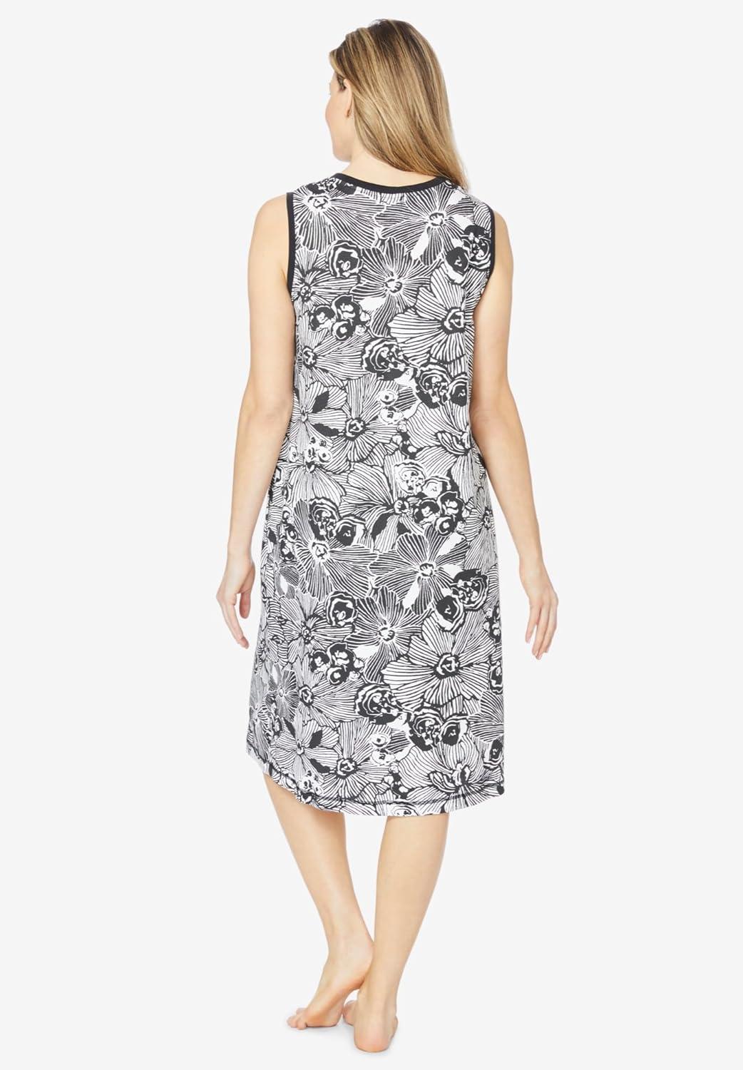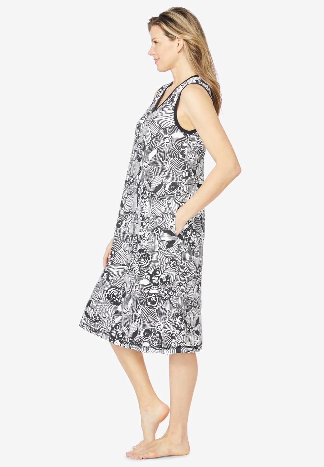 Dreams & Co. Plus Size Trapeze V-Neck Lounger(Black White Flower)