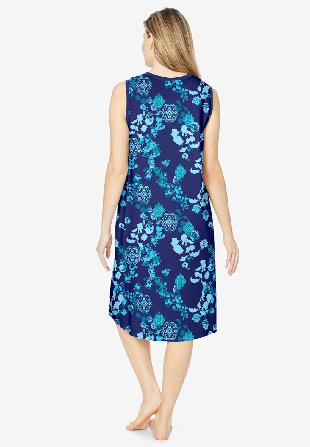 Dreams & Co. Plus Size Trapeze V-Neck Lounger(Evening Blue Peony)