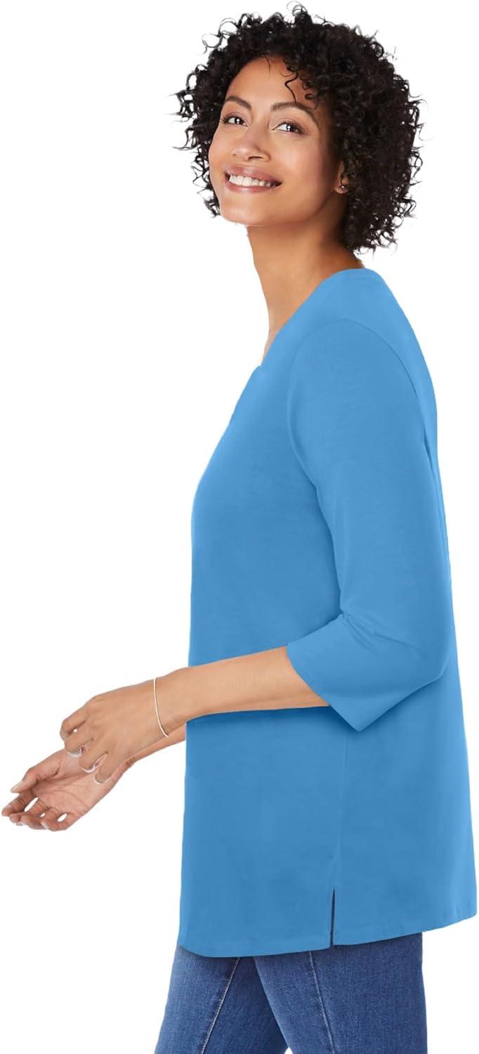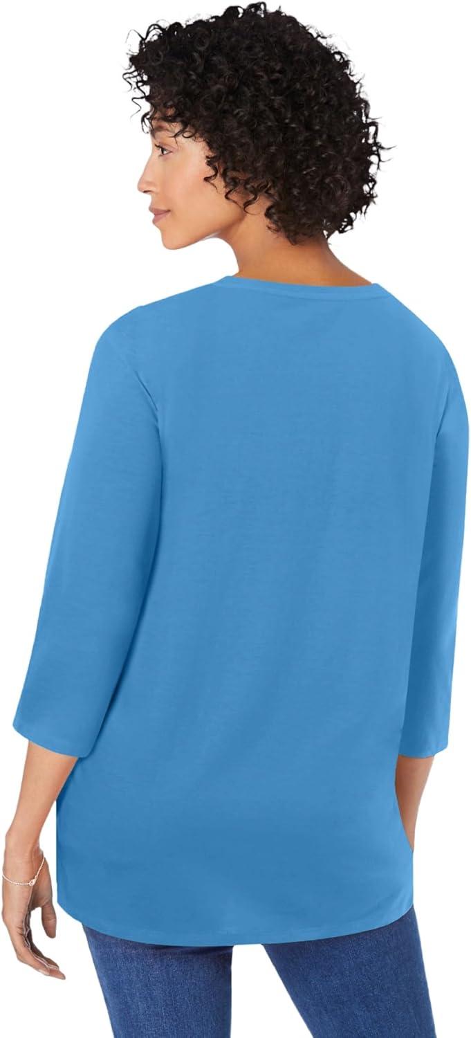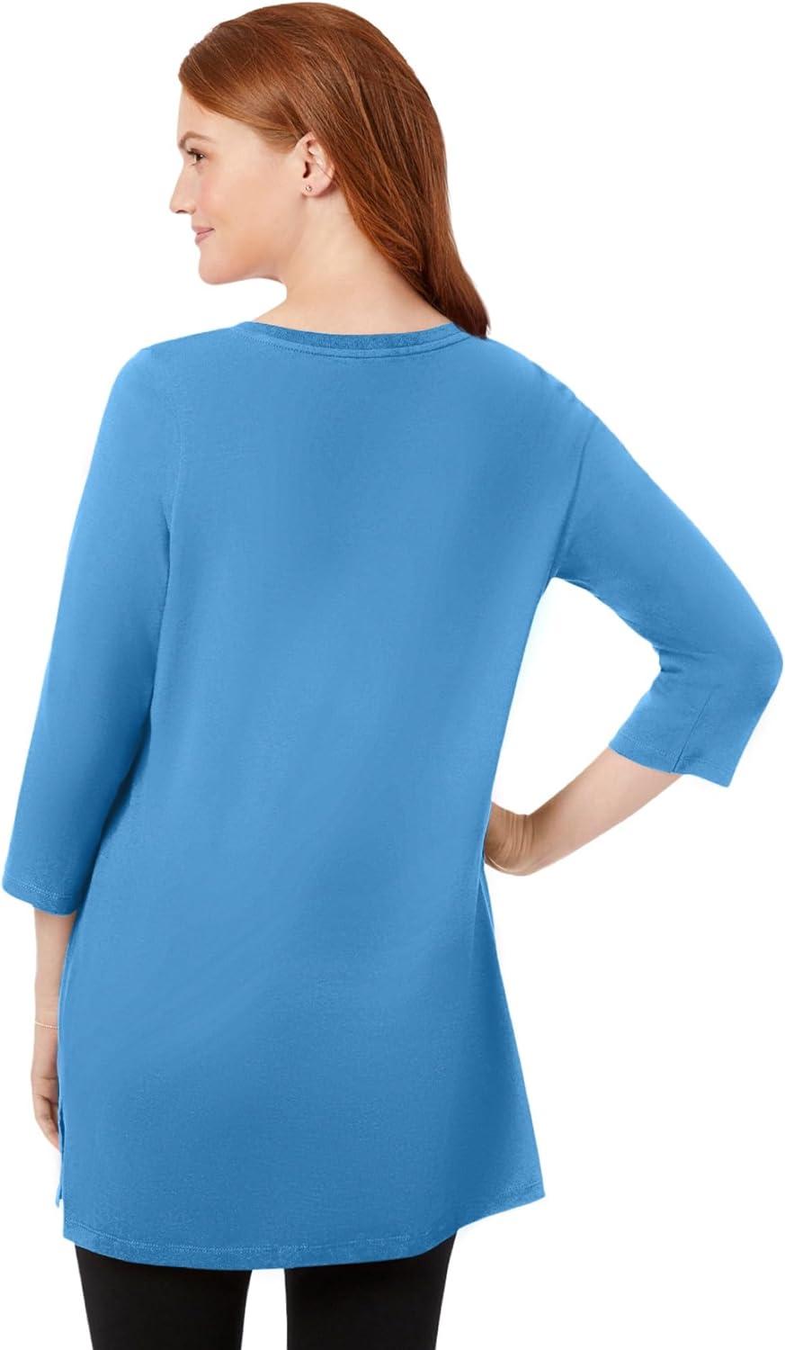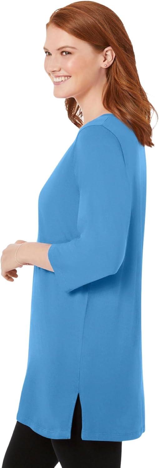 Woman Within Plus Size Perfect Three-Quarter-Sleeve Scoopneck Tunic(Azure Blue)