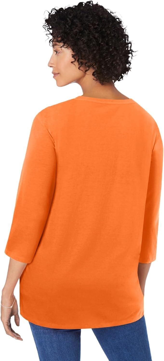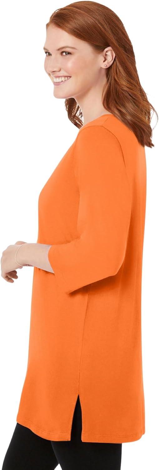Woman Within Plus Size Perfect Three-Quarter-Sleeve Scoopneck Tunic(Orange Twist)