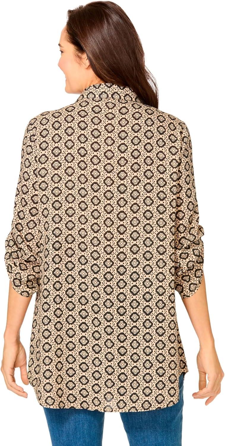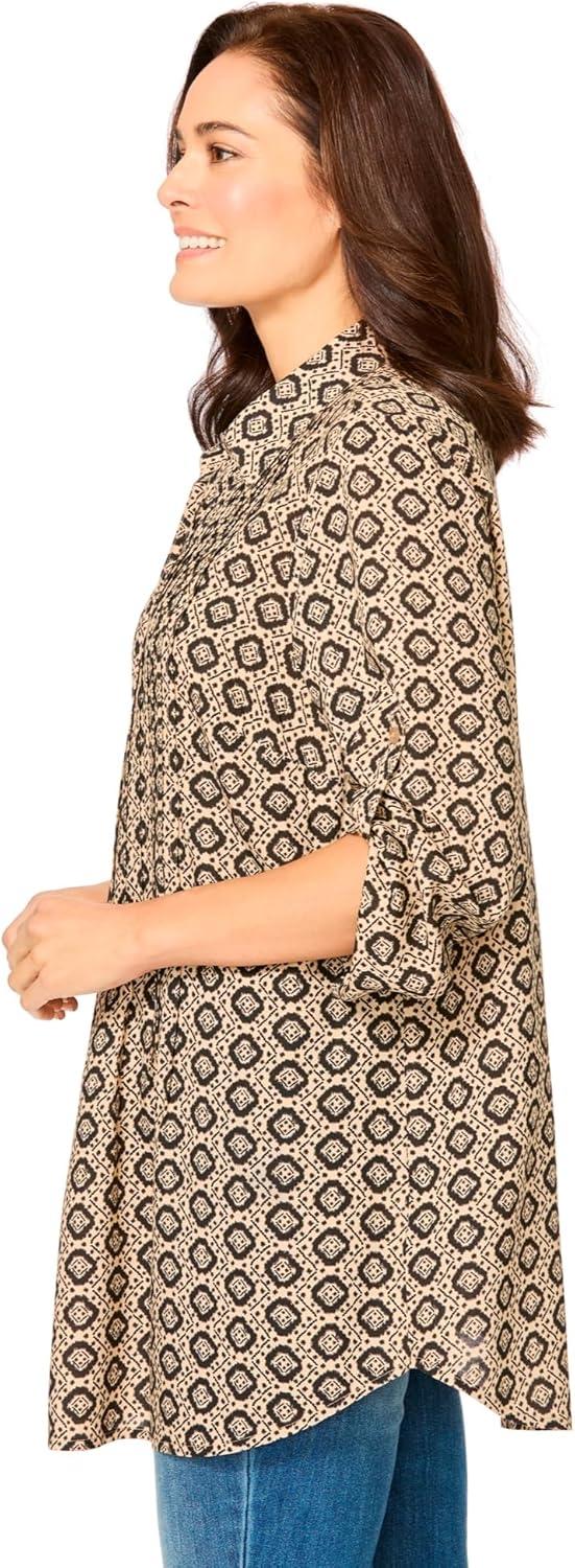 Woman Within Plus Size Rayon Pintucked Effortless Tunic Blouse(New Khaki Geo)