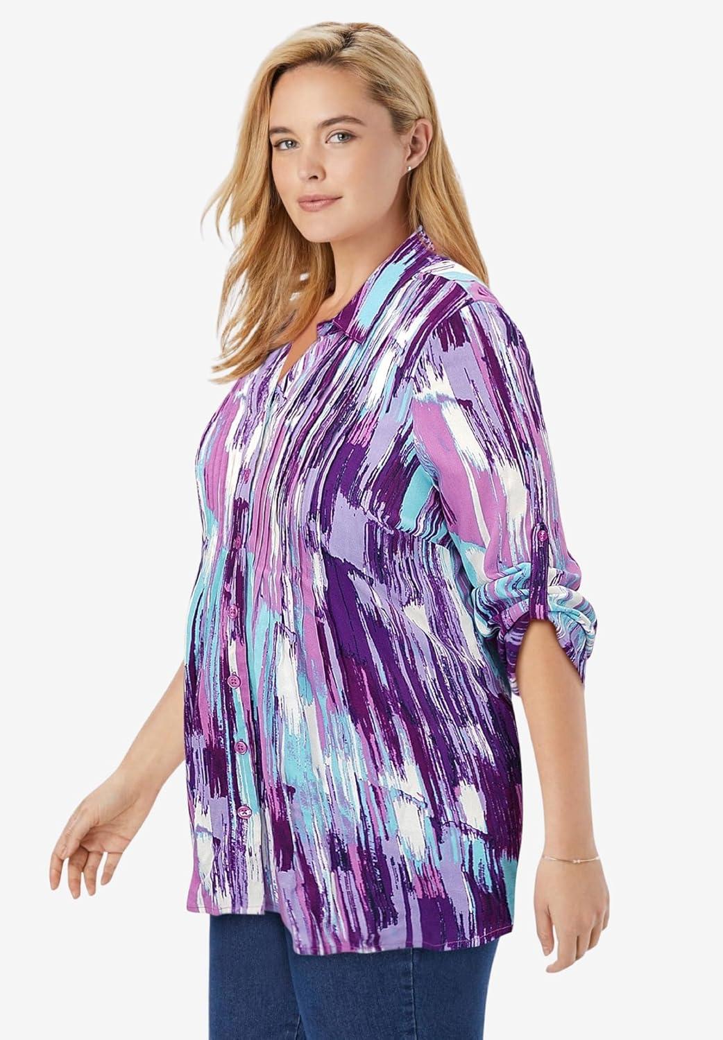 Woman Within Plus Size Rayon Pintucked Effortless Tunic Blouse(Pretty Orchid Texture)