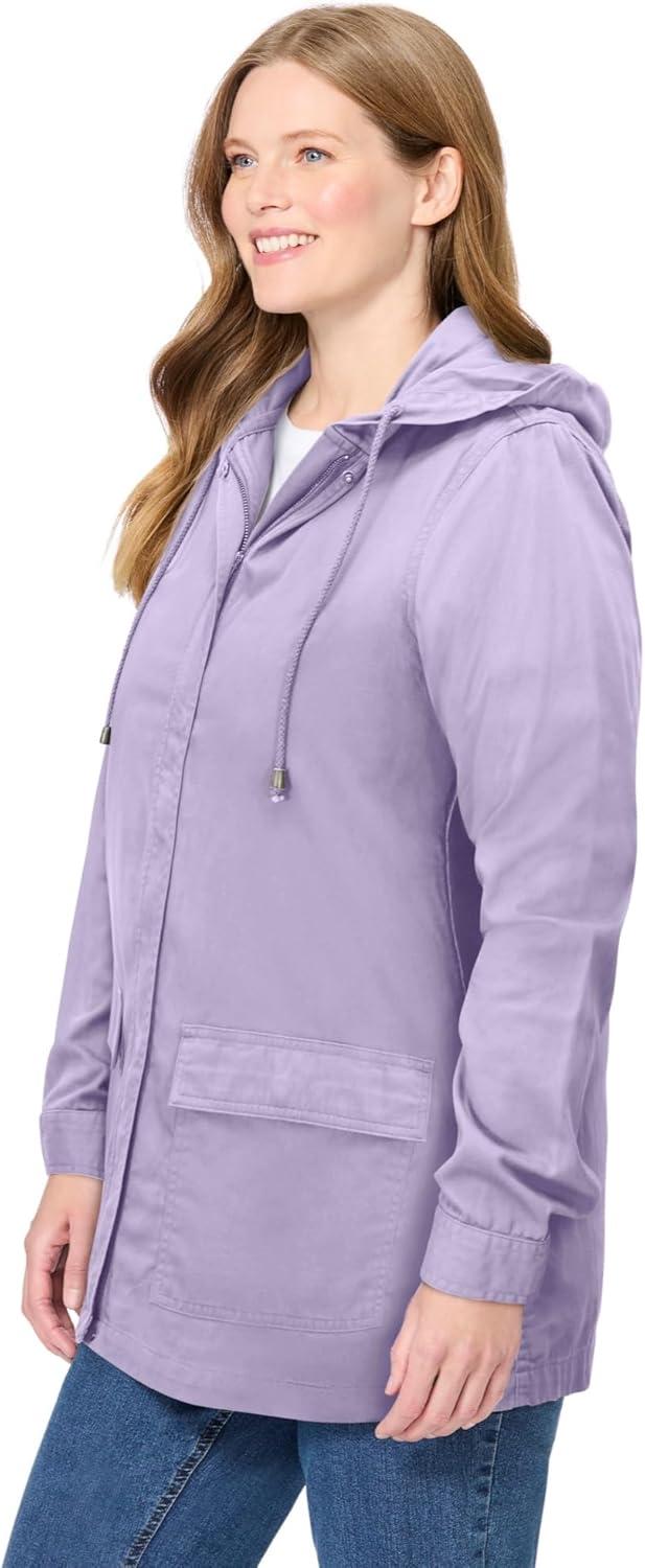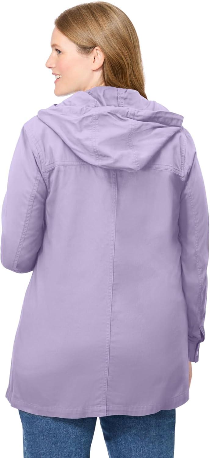 Woman Within Plus Size Lightweight Hooded Jacket Long Oversized Coat(Pale Lilac)