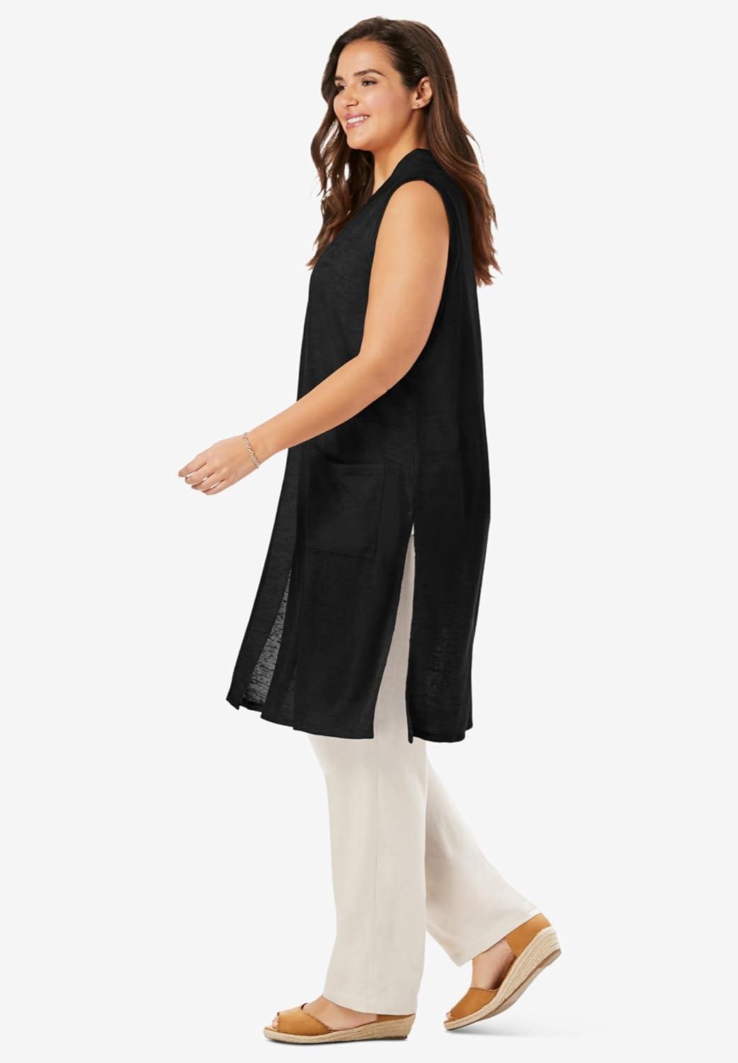 Woman Within Plus Size Lightweight Linen Vest(Black)