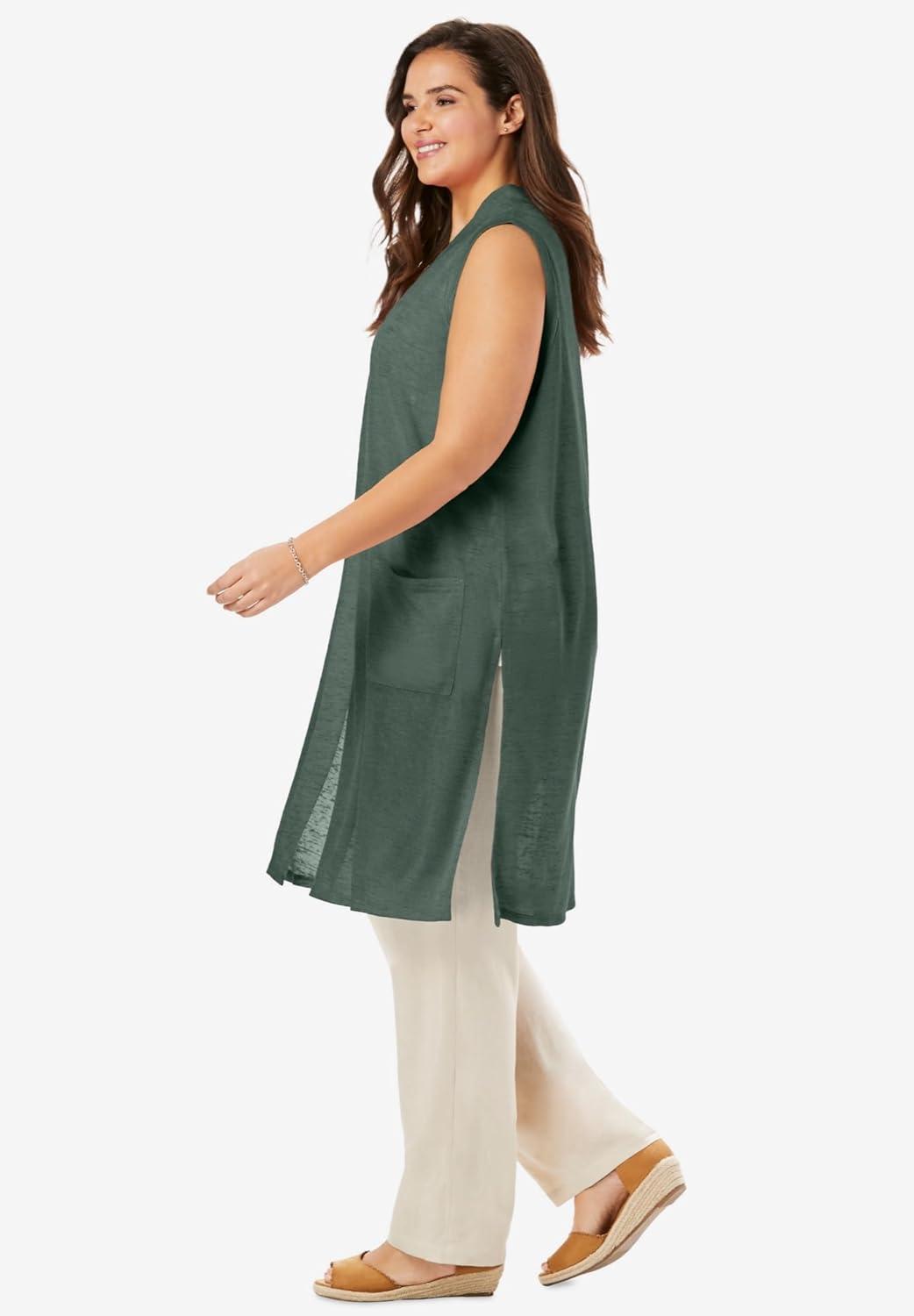 Woman Within Plus Size Lightweight Linen Vest(New Khaki)