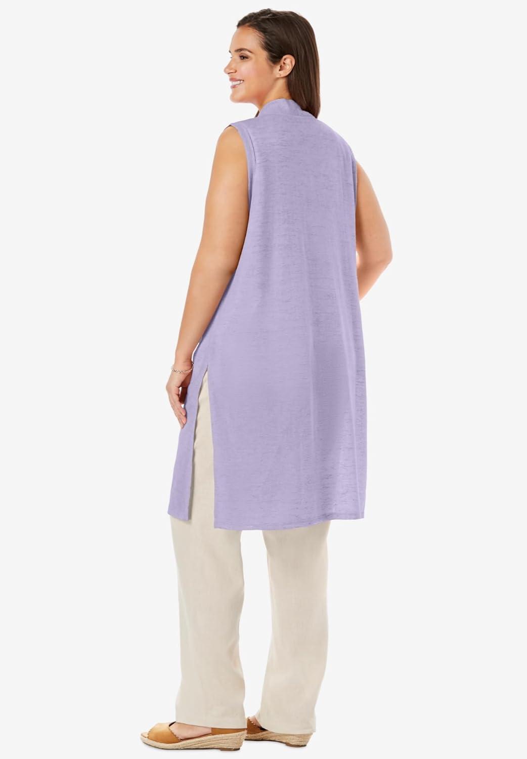 Woman Within Plus Size Lightweight Linen Vest Sweater(Pale Lilac)