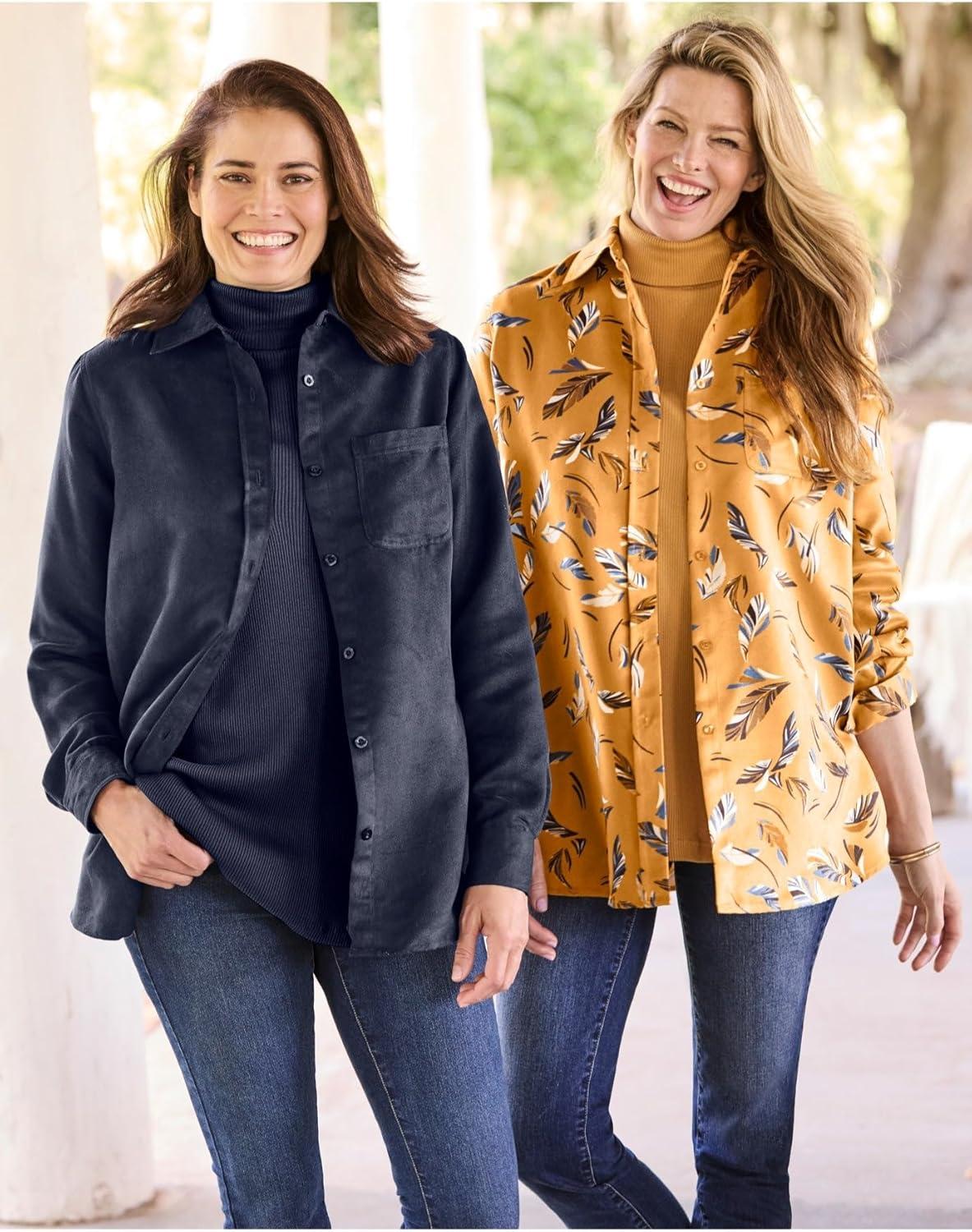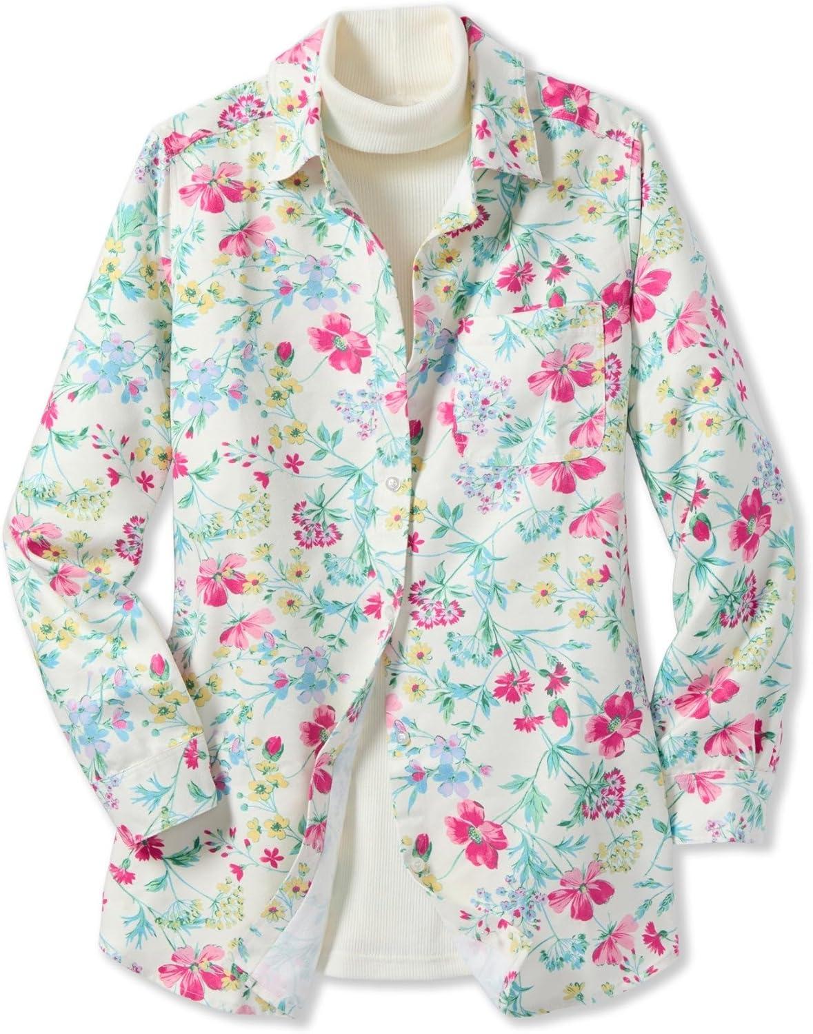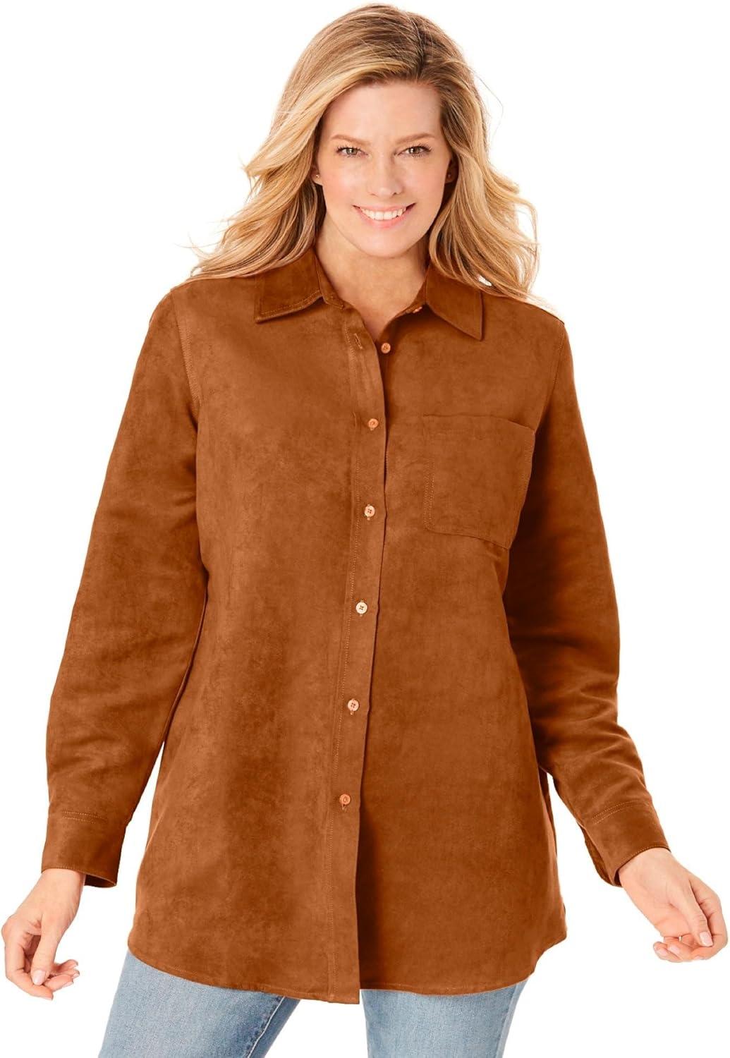 Woman Within Plus Size Soft Faux Suede Shirt(Ivory Multi Prairie)
