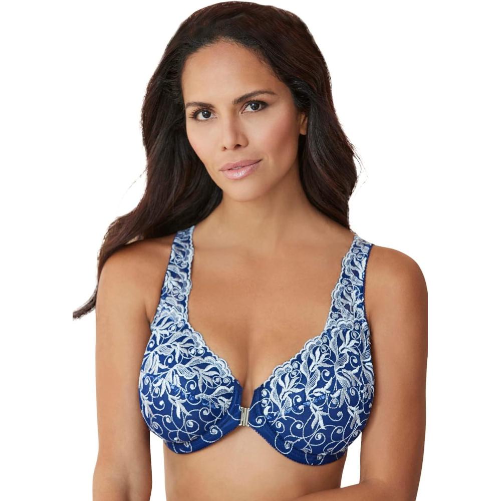 Amoureuse Women’s Plus Size Embroidered Front-Close Underwire Bra(Evening Blue Silver)
