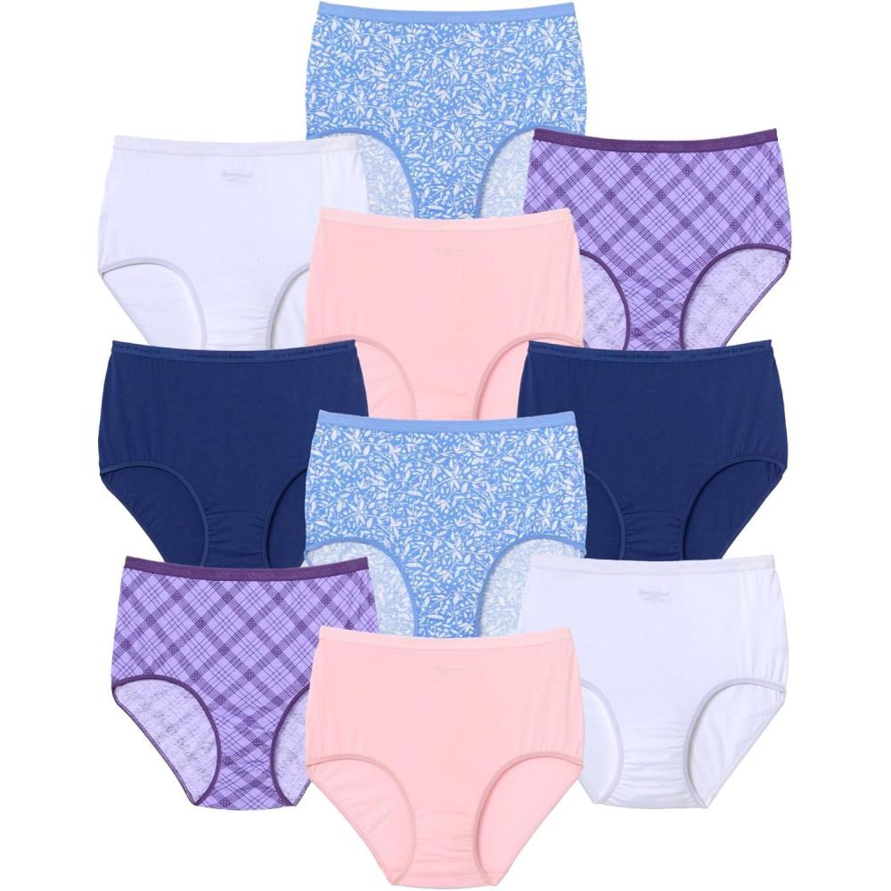 Comfort Choice Plus Size Full Coverage Cotton Brief 10-Pack(Garden Plaid Pack)