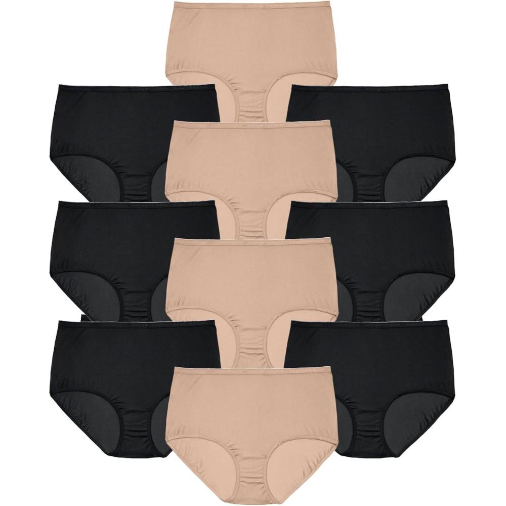 Comfort Choice Plus Size Full Coverage Cotton Brief 10-Pack(Nude Black Pack)