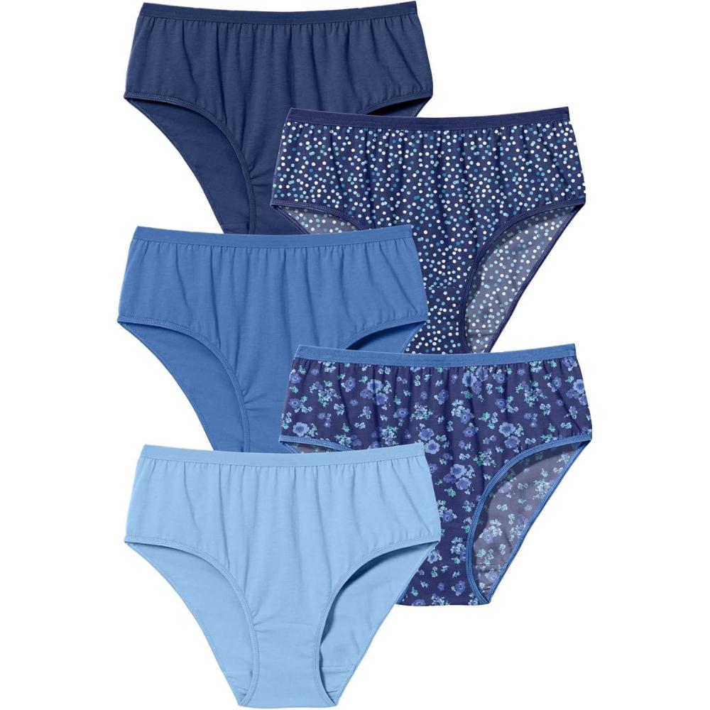 Comfort Choice Plus Size Hi-Cut Cotton Brief 5-Pack(Evening Blue Dot Pack)