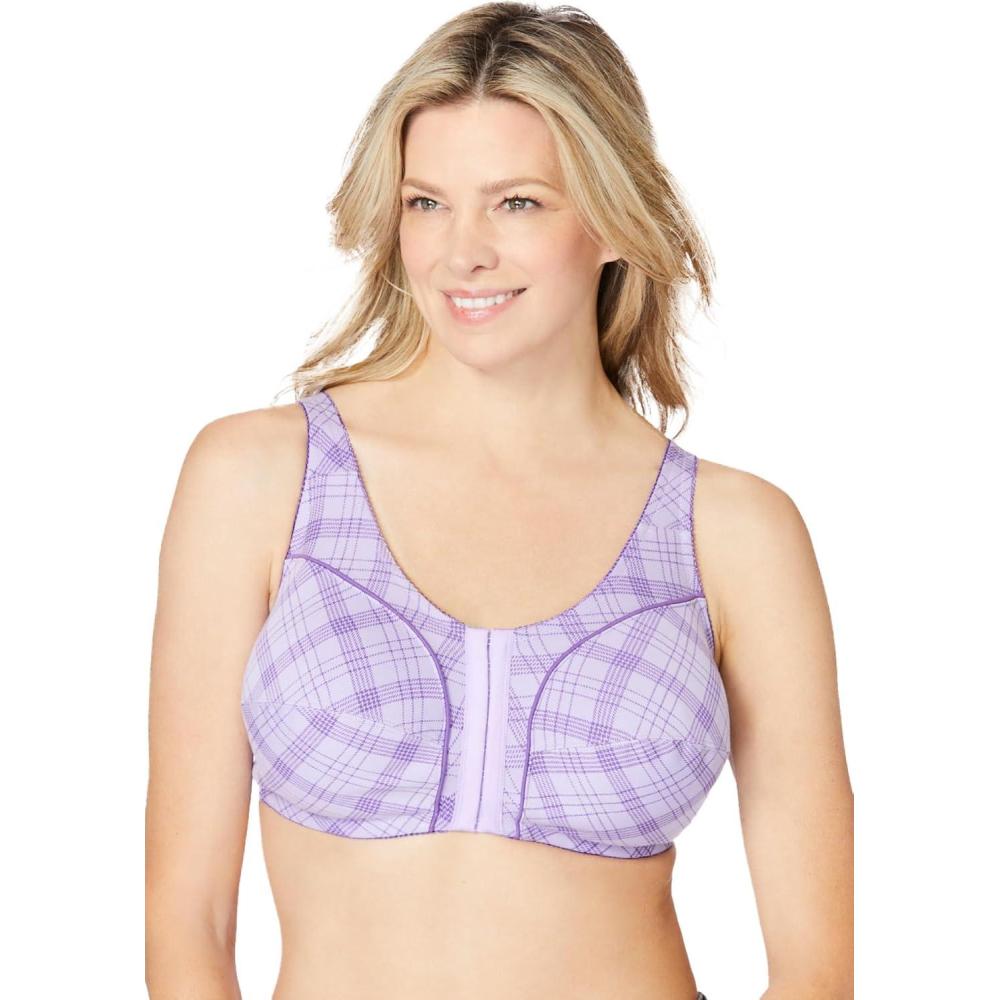Comfort Choice Women’s Plus Size Cotton Front-Close Wireless Bra(Spring Plaid)