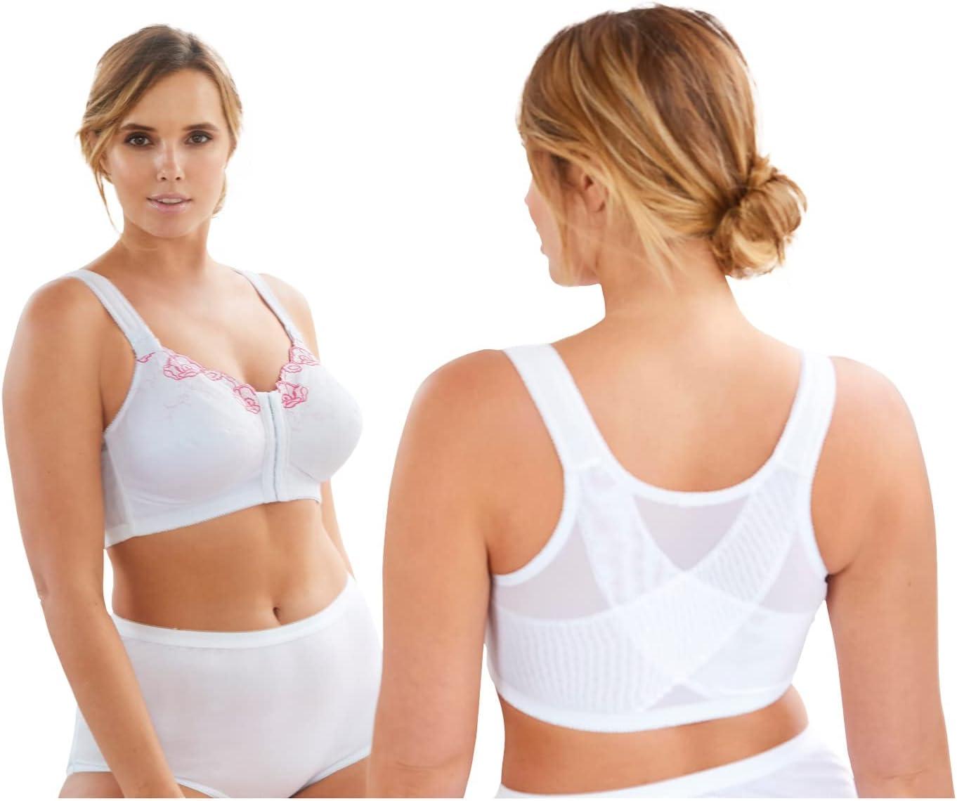 Comfort Choice Women’s Plus Size Front-Close Embroidered Wireless Posture Bra(Rich Magenta Floral)