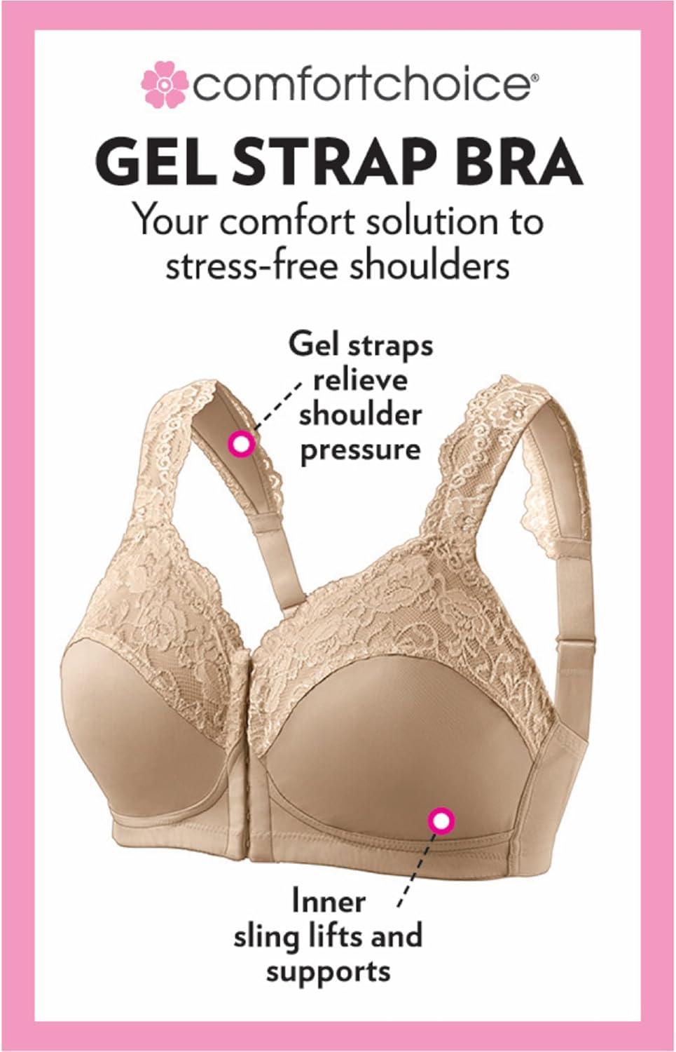 Comfort Choice Women’s Plus Size Front Close Wireless Gel Strap Bra(Sweet Coral)