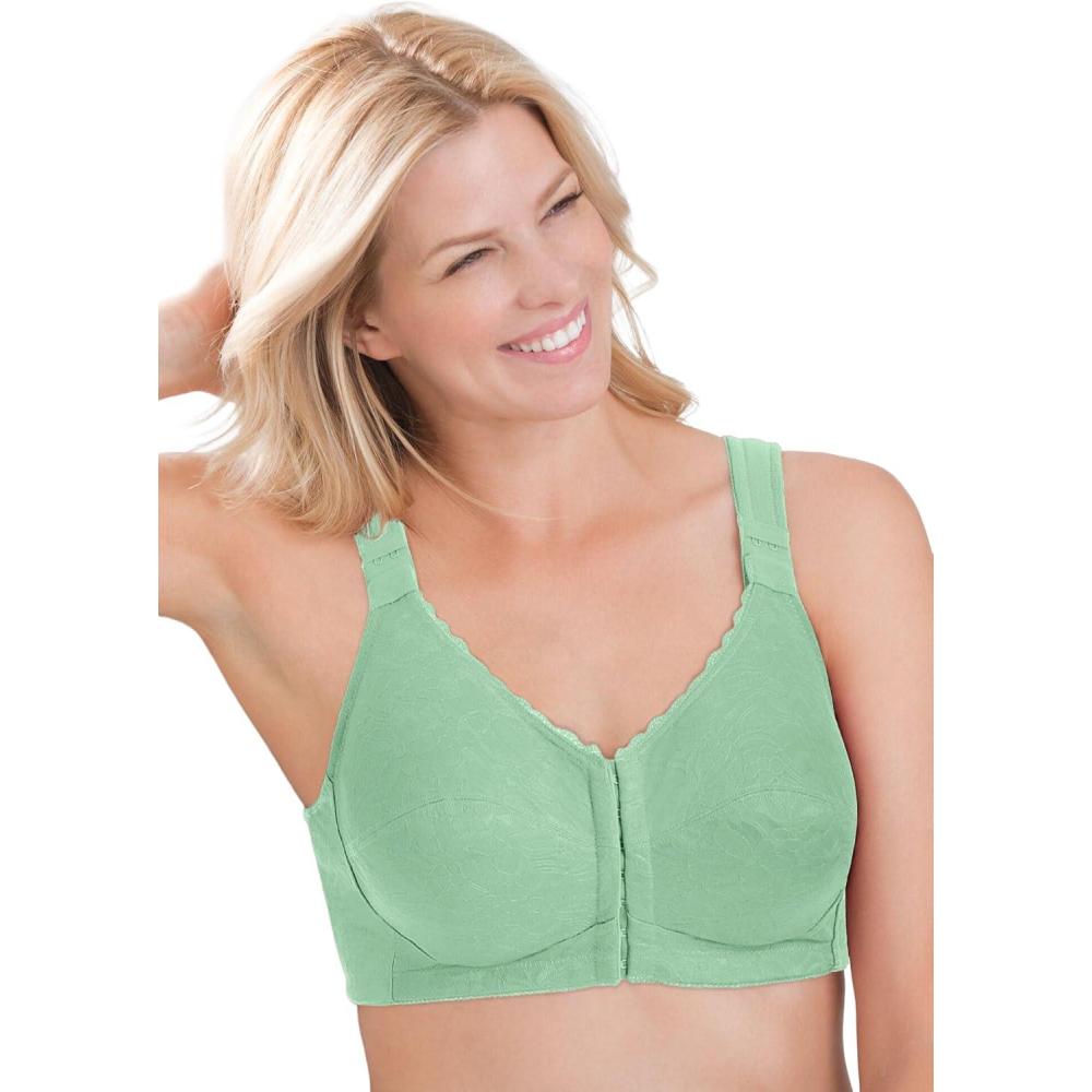 Comfort Choice Women’s Plus Size Front Close Wireless Posture Bra(Olive Mint)