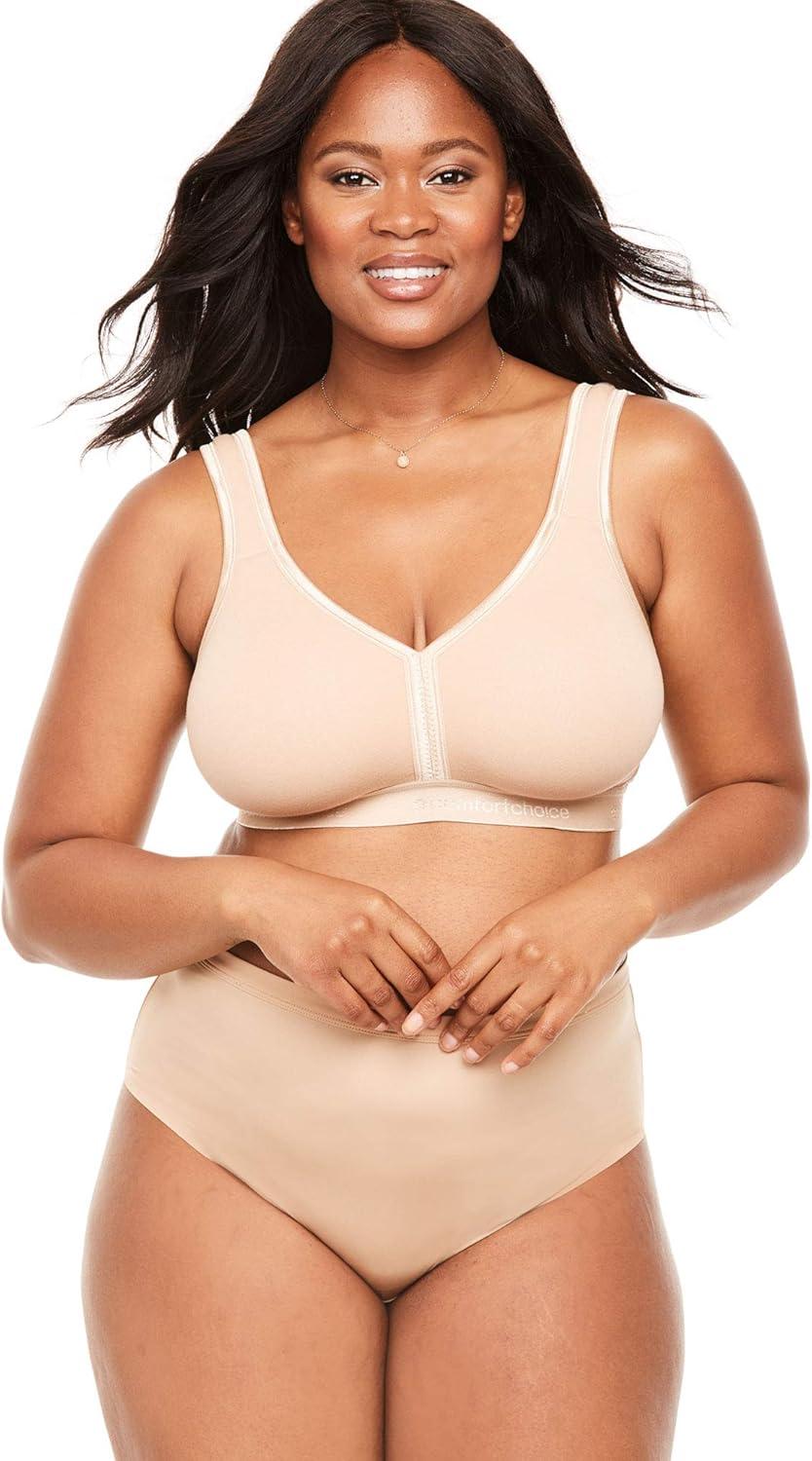 Comfort Choice Women’s Plus Size Wireless Back-Close Lounge Bra(White)