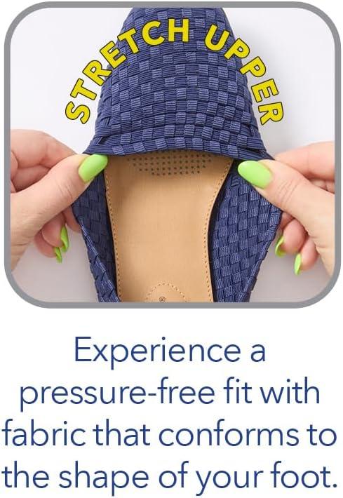 Designed for comfort and versatility, this stylish slip-on features a stretch-fit upper for easy, everyday wear. Note: Size 13 not available in Crimson, Brown, Dark Hunter, Grey Multi, Bronze, Multi Pastel, Multi Tie Dye, White Red, Black Metallic, Denim Metallic. There will be variations in the print due to the individualistic nature of the pattern Stretch woven fabric upper for a custom fitbr>Grooved bottom with new heel pod to add spring to your stepbr>Padded insole for comfortbr>Flexible, skid-resistant outsole for a better gripbr>1” heel Comfortable and versatile flats available in full and half sizes 7-11, 12, 13 M, W, WW Comfortview Collection: Offered in an inclusive size range of extended sizes and widths for a custom fit. Each shoe made with padded insoles and flexible outsoles for all day comfort.