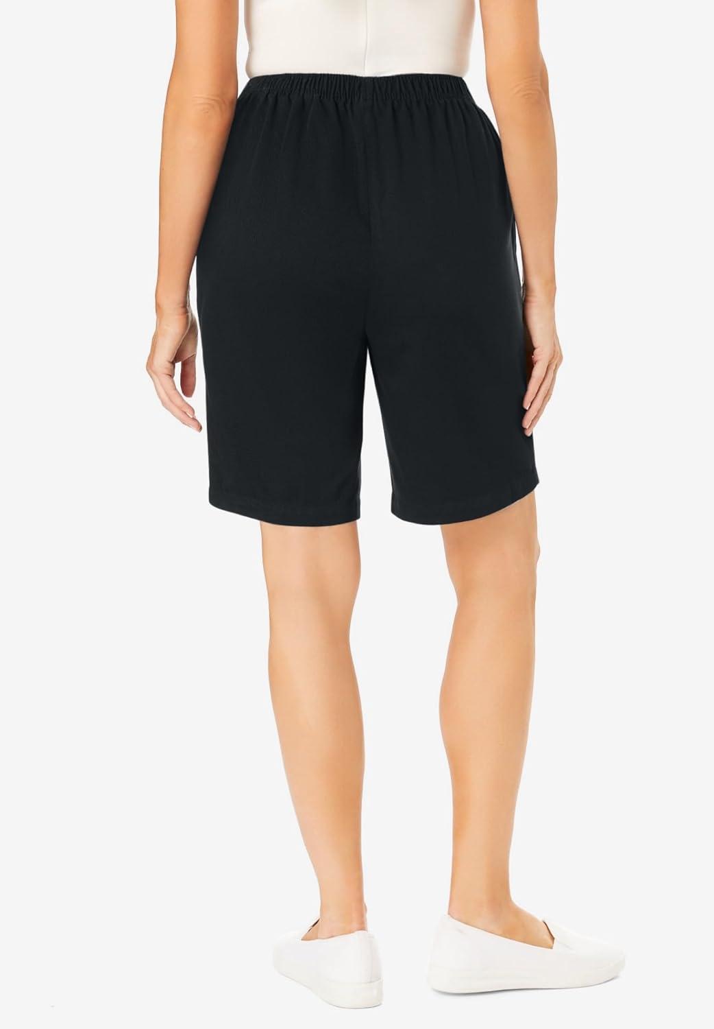 Woman Within Plus Size 7-Day Elastic-Waist Pull-On Cotton Denim Shorts(Black)