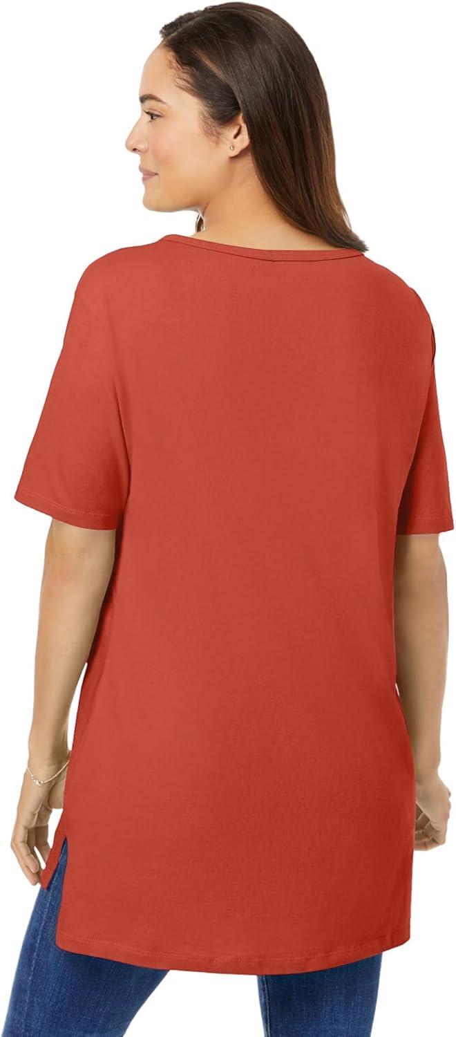 Woman Within Plus Size Perfect Short-Sleeve Boatneck Tunic(Burnt Red)
