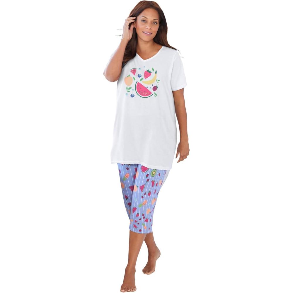 Dreams & Co. Plus Size 2-Piece Capri PJ Set(Multi Fruit)