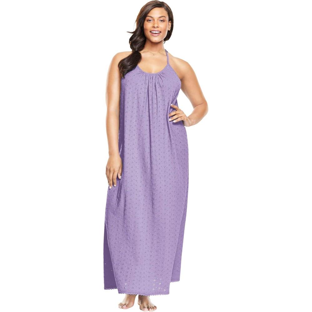 Dreams & Co. Plus Size Breezy Eyelet Knit Long Nightgown(Soft Iris)