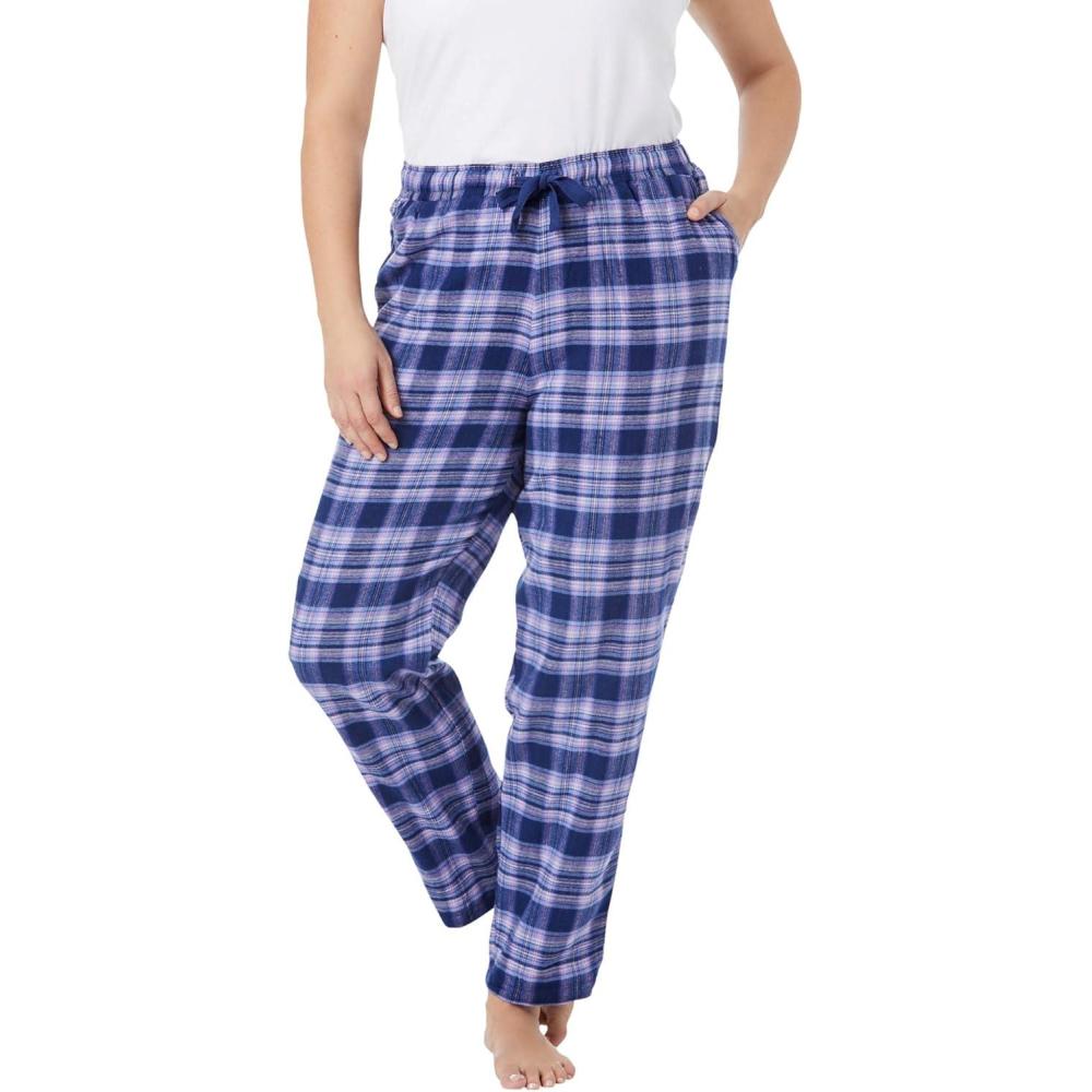 Dreams & Co. Plus Size Cotton Flannel Pants(Evening Blue Plaid)