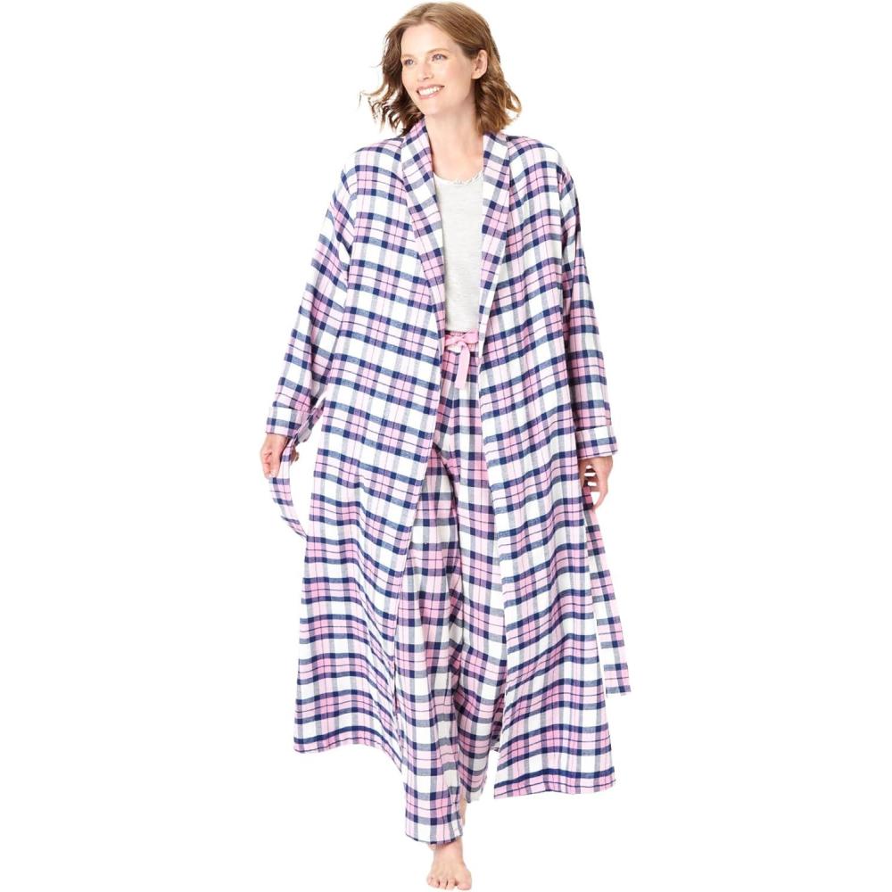 Dreams & Co. Plus Size Long Flannel Robe(Pink Plaid)