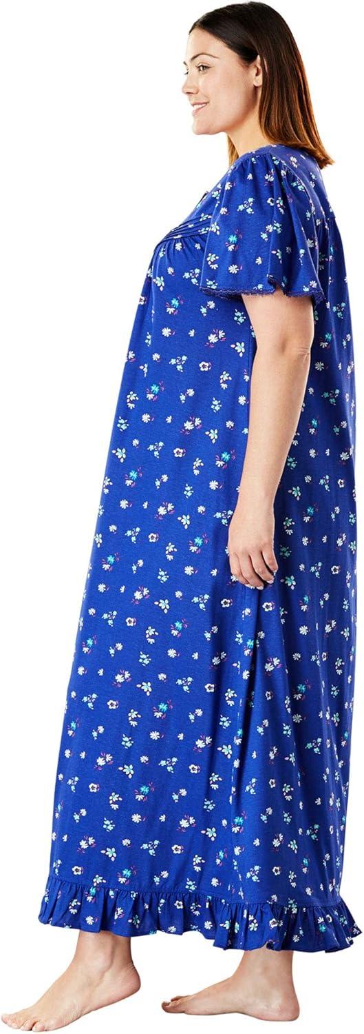 Dreams & Co. Plus Size Long Floral Print Cotton Gown(Evening Blue Flowers)