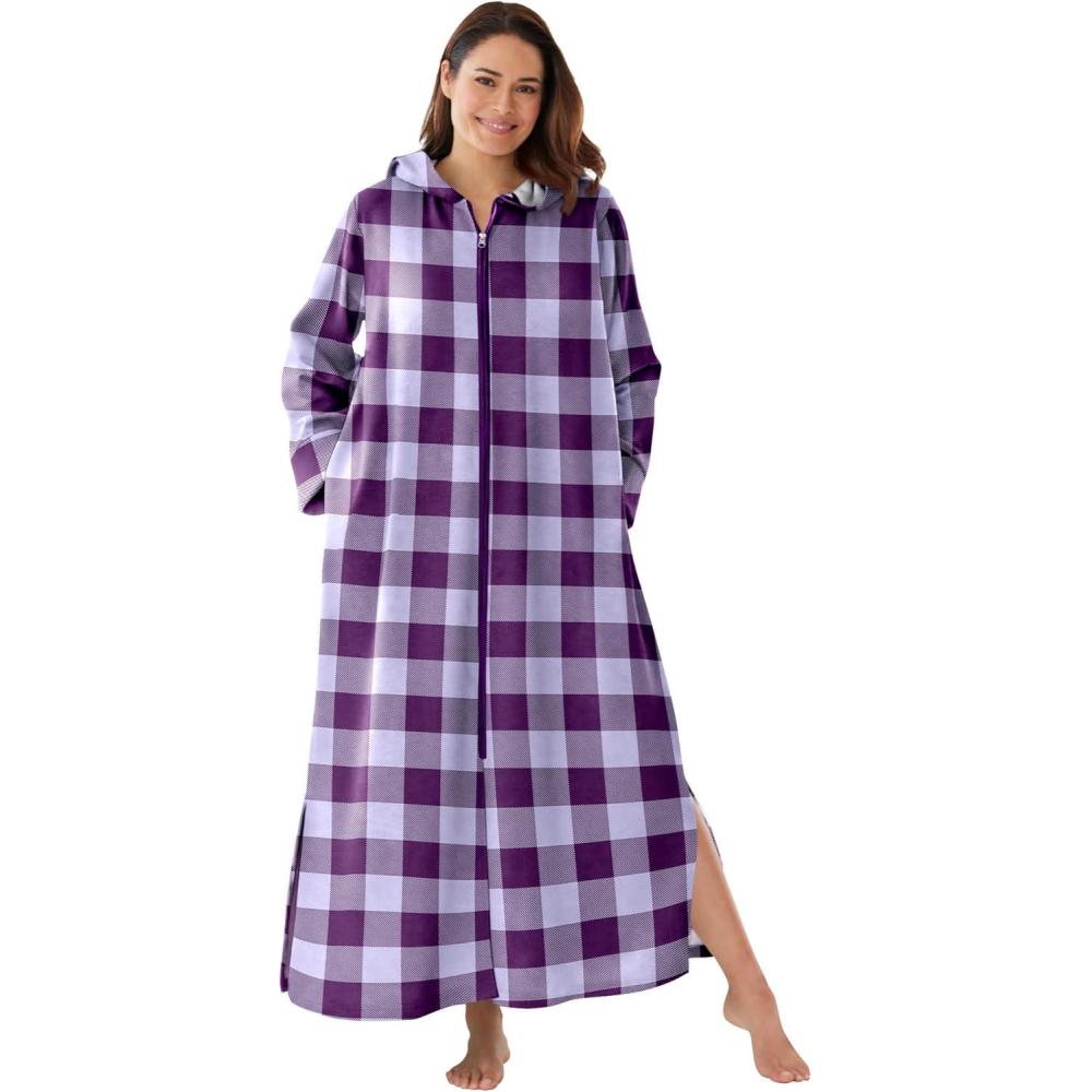 Dreams & Co. Plus Size Long Hooded Fleece Sweatshirt Robe(Lilac Grape Buffalo)