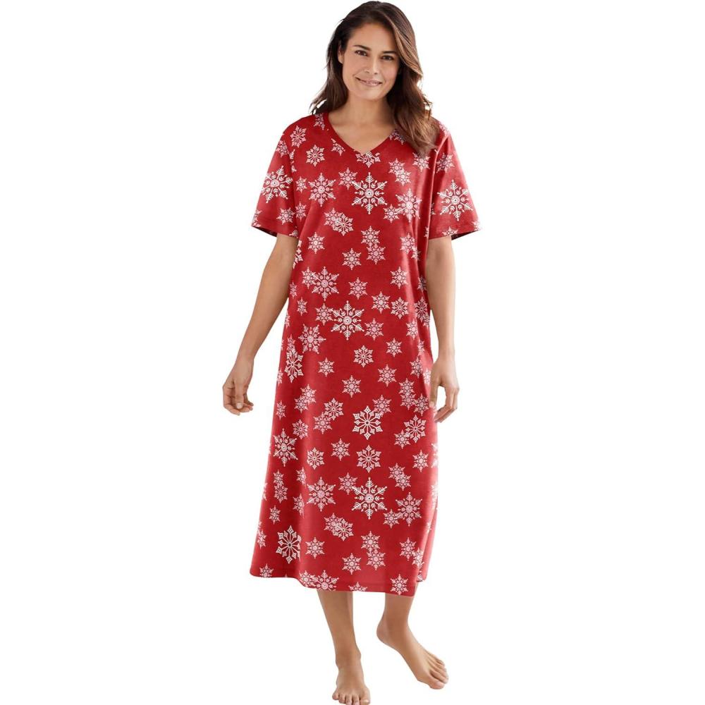 Dreams & Co. Plus Size Long Print Sleepshirt(Classic Red Winter Snow)