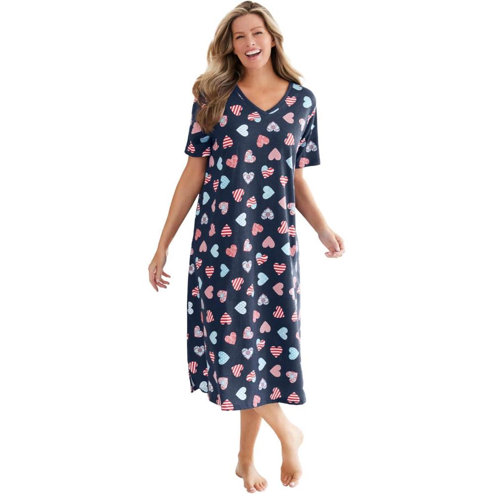 Dreams & Co. Plus Size Long Print Sleepshirt(Navy Americana Heart)